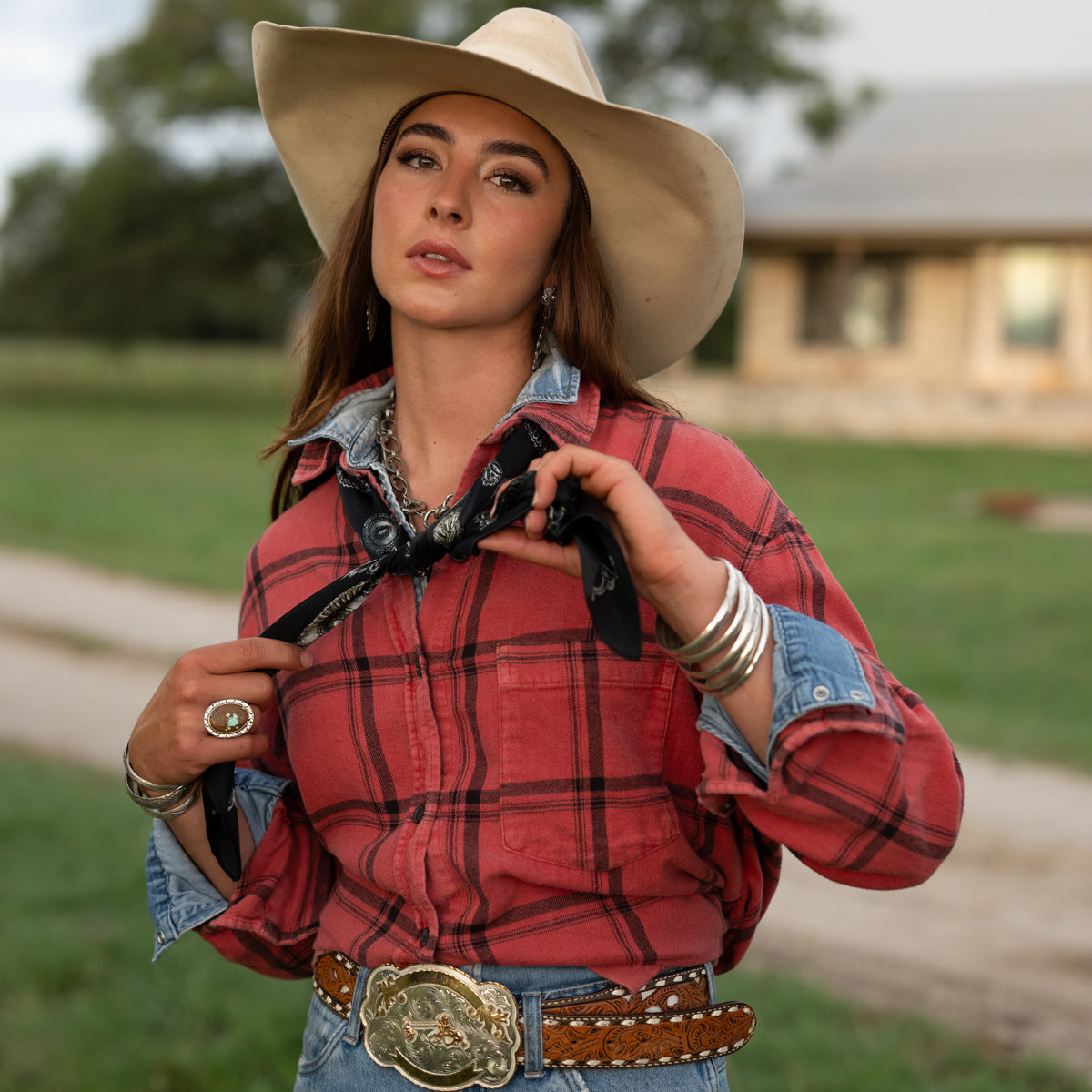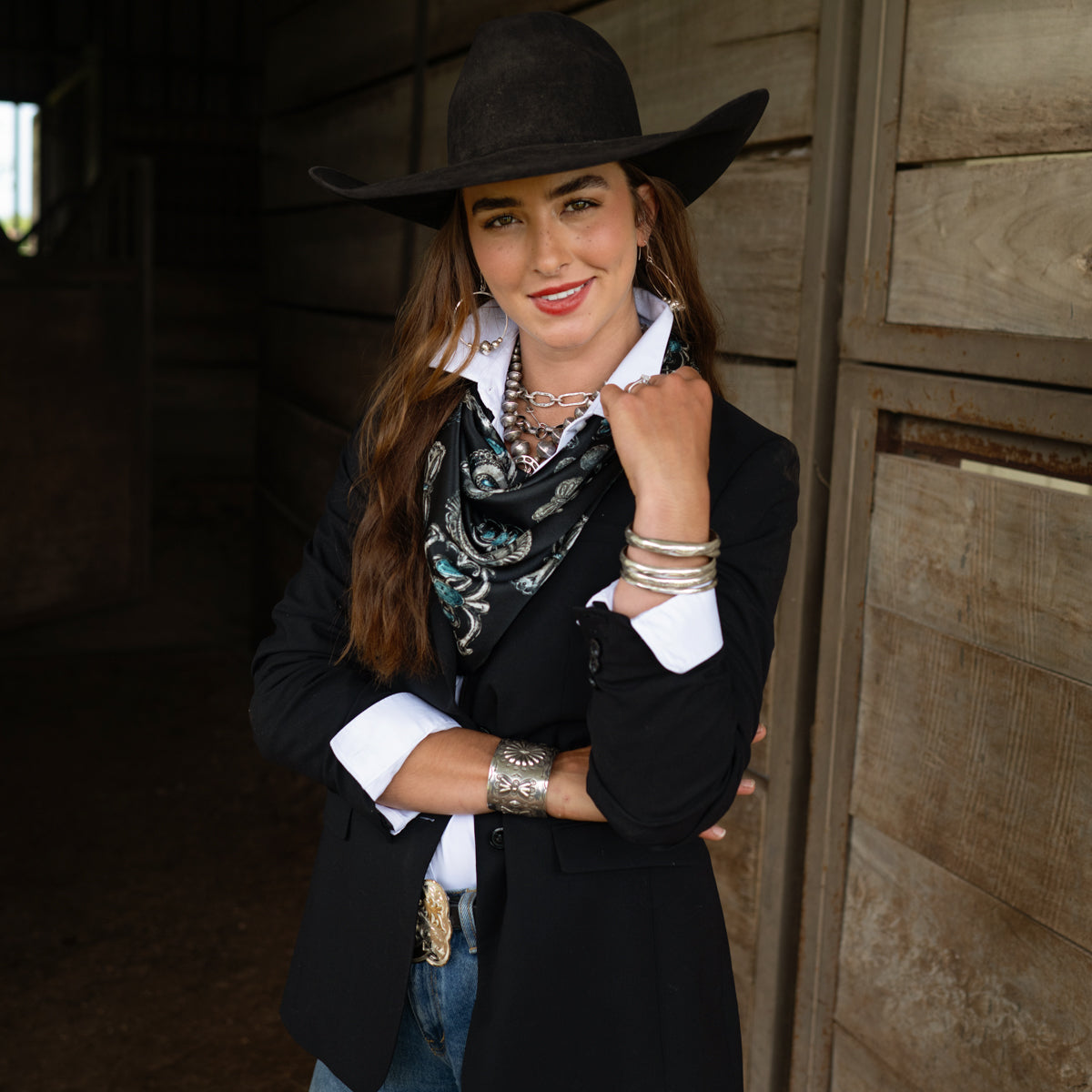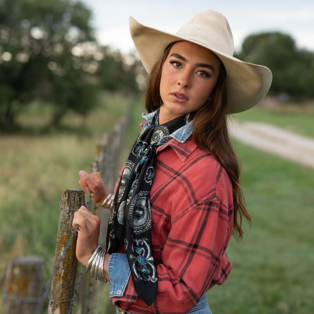 Tips: Tie it in a knot or tie it in a bow! Wrap this Long-Tall Wild Rag around twice and tie a knot or tie it in a bow, or wrap once and leave big and flowing for some drama. This scarf looks great as a belt or tied on a handbag. Just have fun and "...tie one on!"
