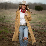 Tips: Tie it in a knot or tie it in a bow! Wrap this Long-Tall Wild Rag around twice and tie a knot or tie it in a bow, or wrap once and leave big and flowing for some drama. Also, this scarf looks great as a belt or tied on a handbag as well. Just have fun and "...tie one on!"
