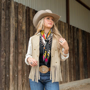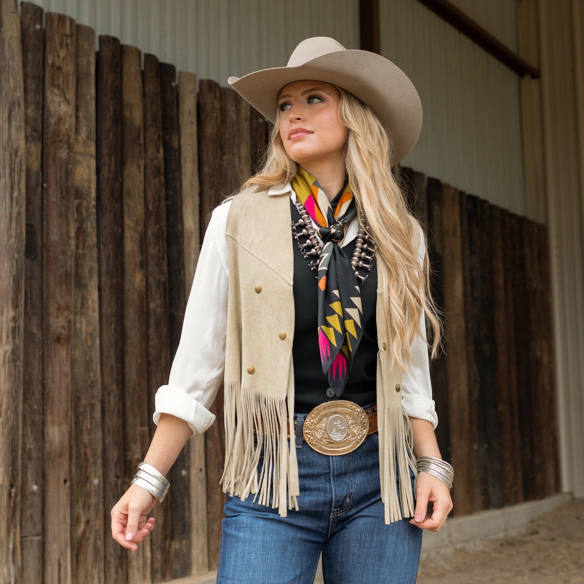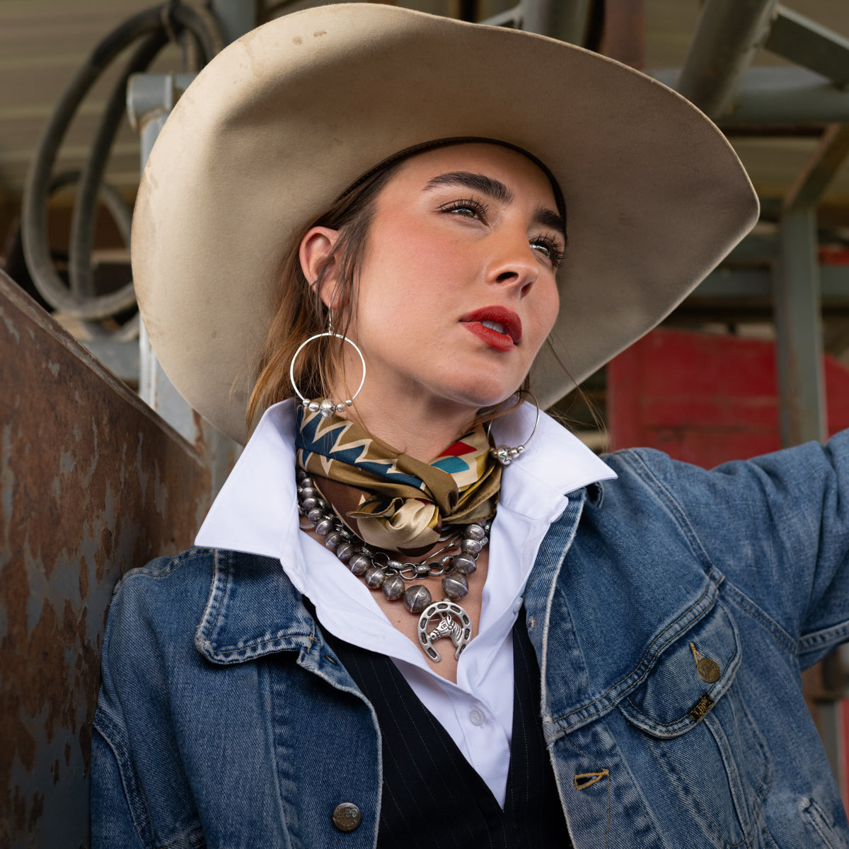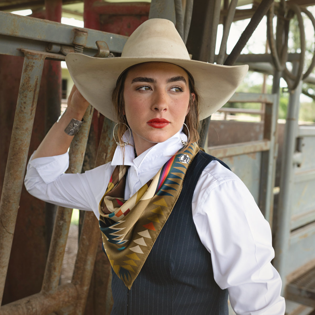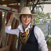 The Cross Me silk scarf is available in both our 35" Long-Tall and our 26" Shorty and are 100% Satin Silk. It honors the spirit of the Southwest—where tradition, nature, and the sacred cycles of life intersect, made for those who walk their own path.