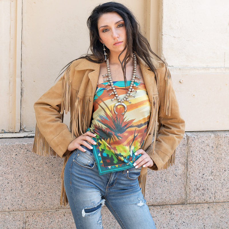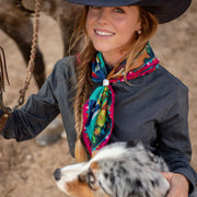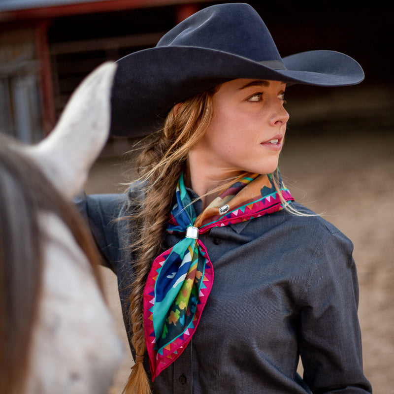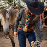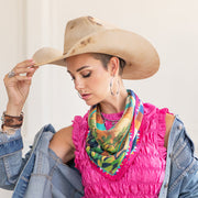 Tips: Tie it in a knot or tie it in a bow! Wrap this Long-Tall Wild Rag around twice and tie a knot or tie it in a bow, or wrap once and leave big and flowing for some drama. This scarf looks great as a belt or tied on a handbag. Just have fun and "...tie one on!"