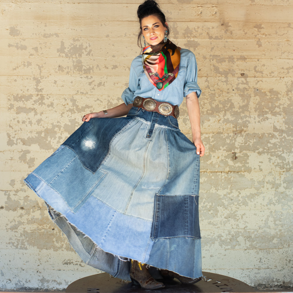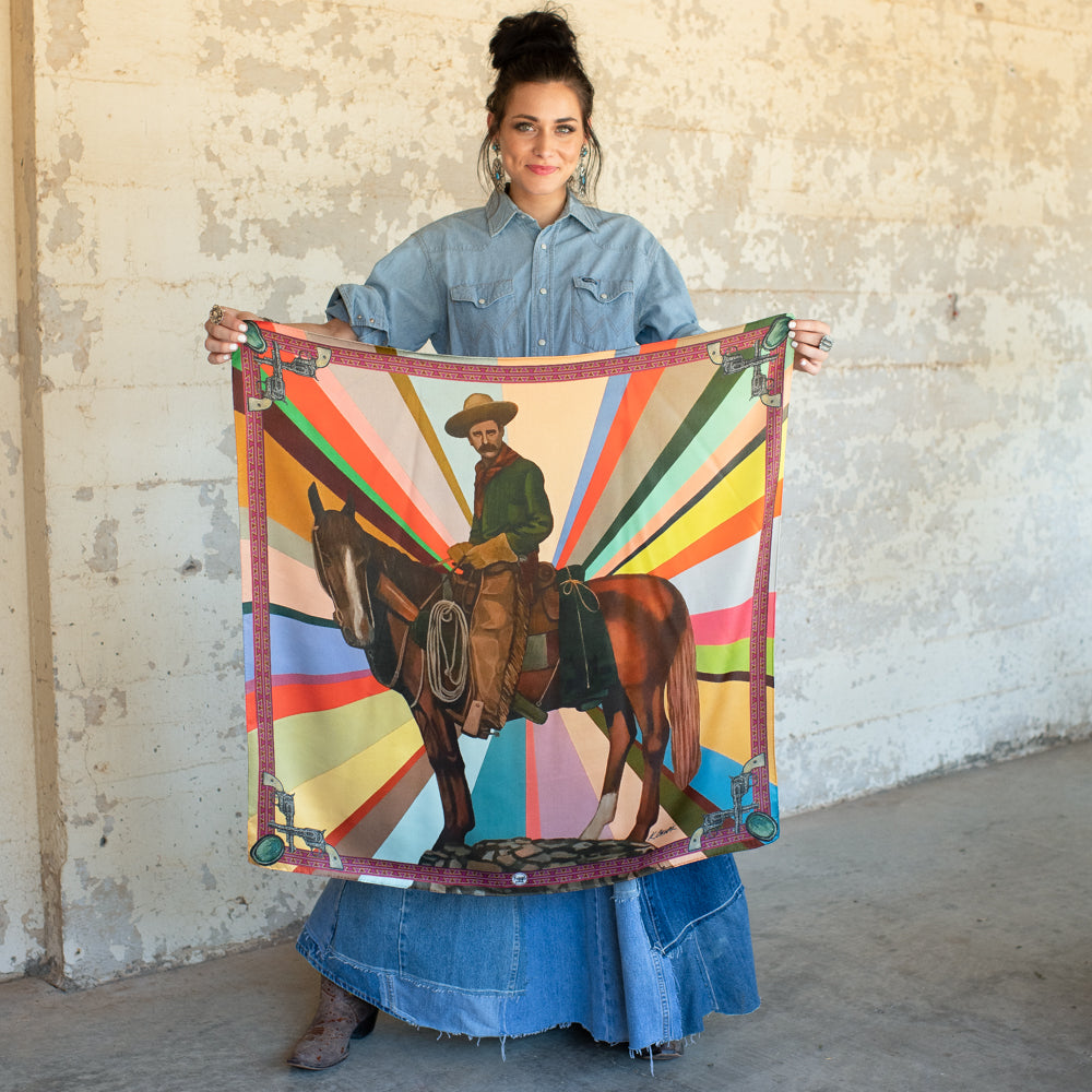 We are so excited to bring the “Son of the West” to you. One of three original works from local artist Kevin Chupik of Aledo, TX. We have been working on creating “artist collections” for some time, and pleased to showcase Kevin’s work. There are so many rich, vibrant colors in this painting we can’t wait to both wear it and frame it!