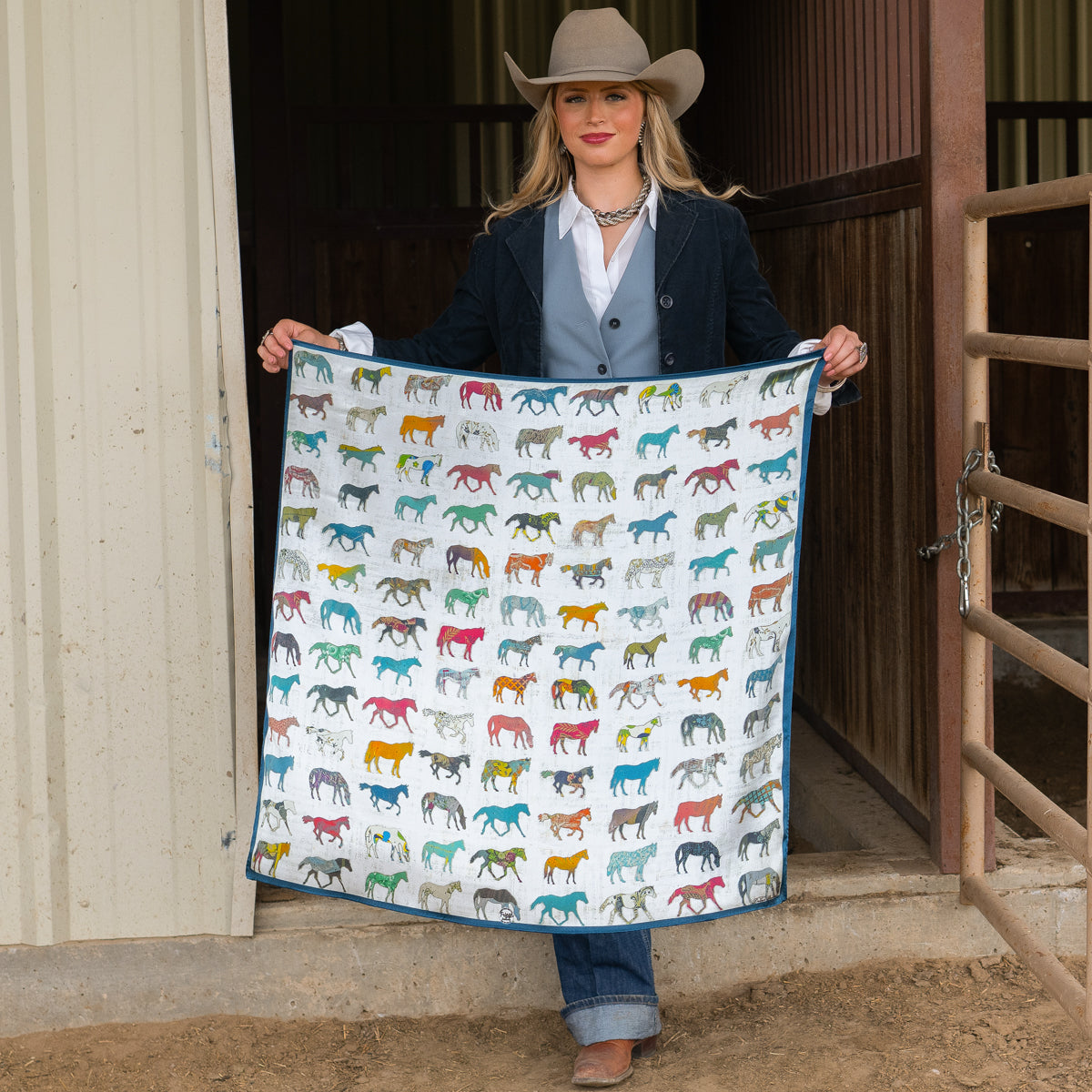 The Remuda captures the power and movement of a wild horse herd beneath a boundless sky. Adapted from Dolan’s original paper collage, each horse—while appearing similar from afar—reveals its own unique detail and texture upon closer look. This piece channels both freedom and subtle complexity in motion.