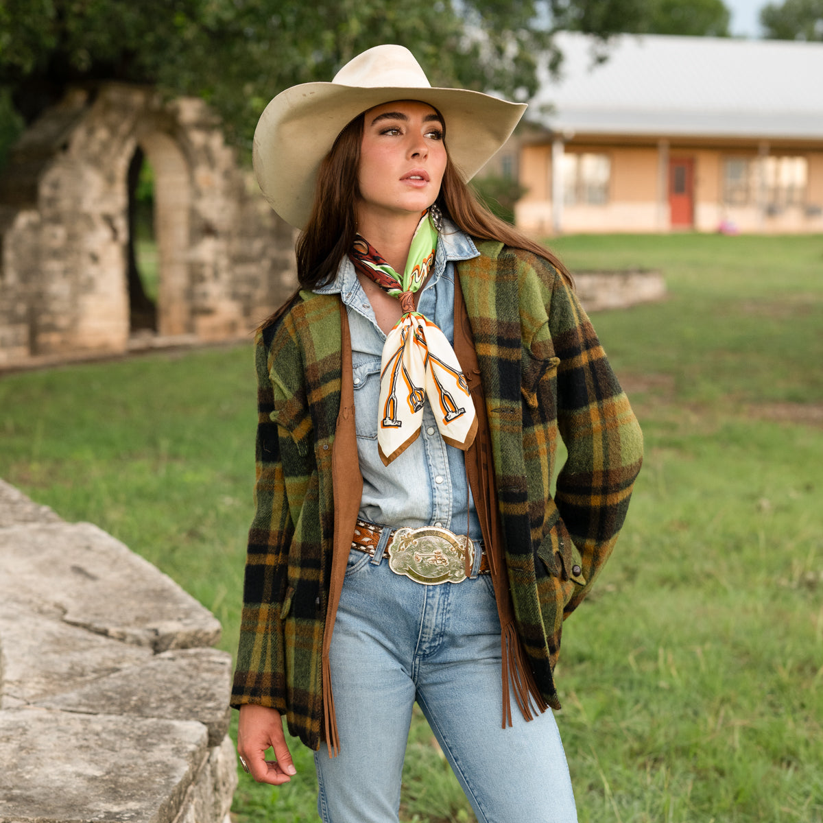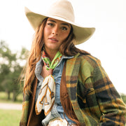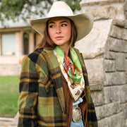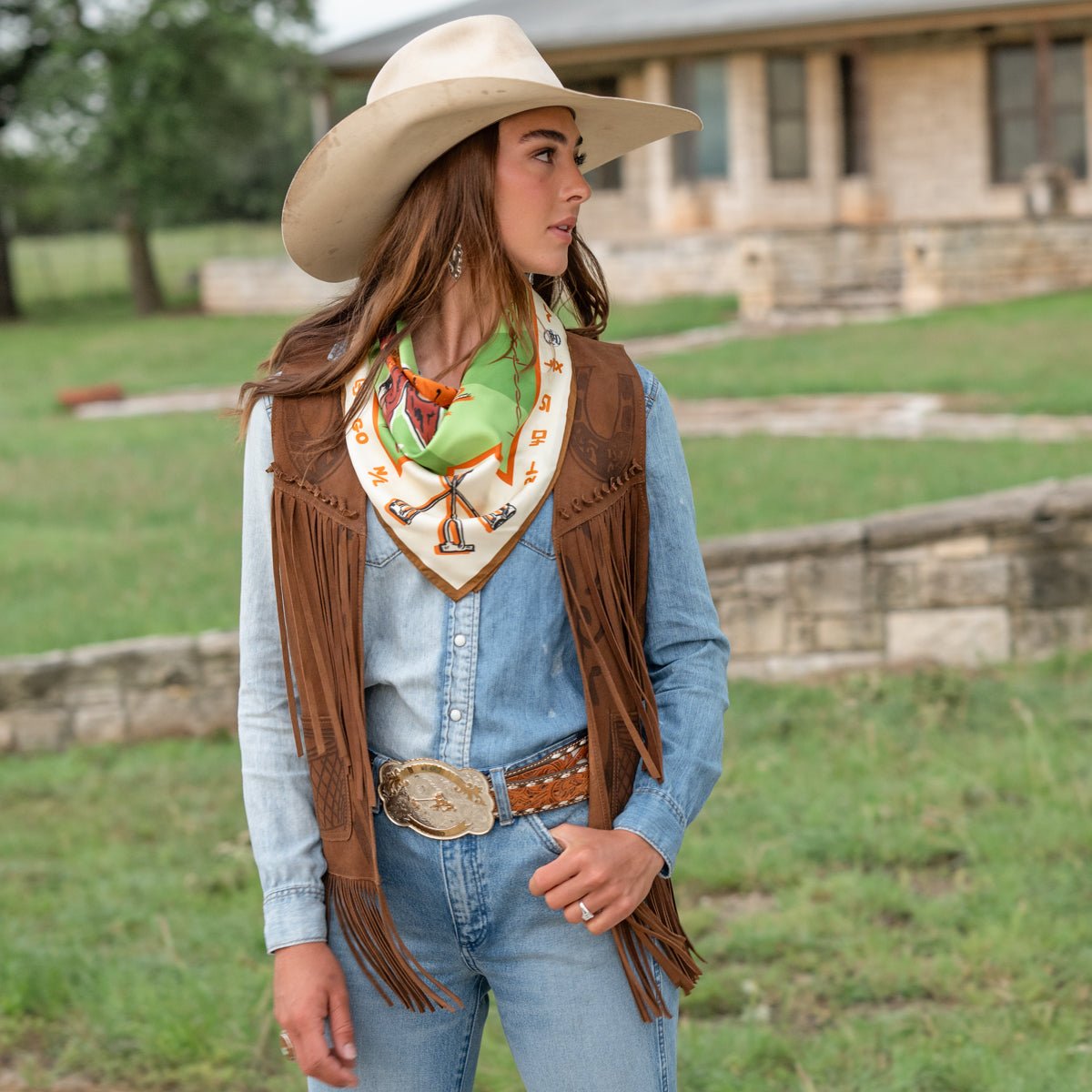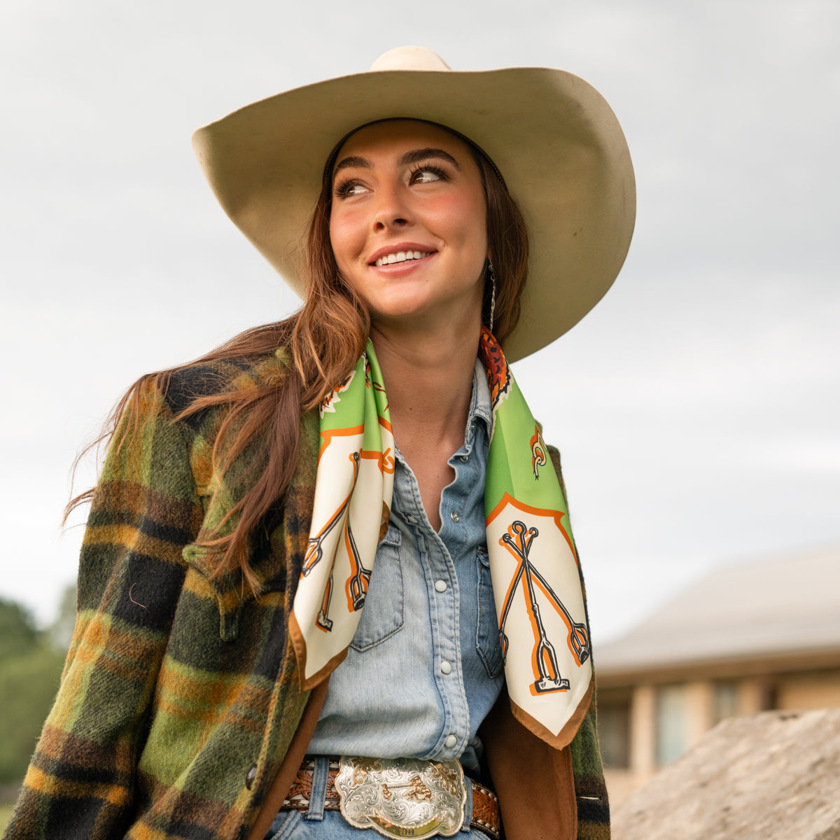 Toro Grande puts a powerful Hereford front and center, surrounded by branding iron motifs and Western typography that feel straight out of a dusty cattle drive. This scarf is bold, rugged, and unapologetically Western—perfect from branding pen to bunkhouse.