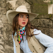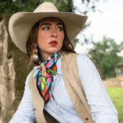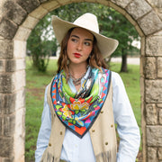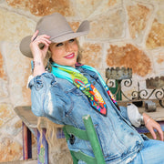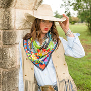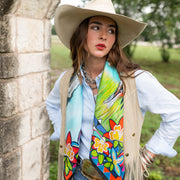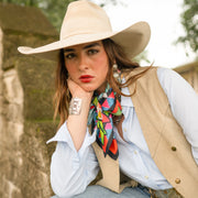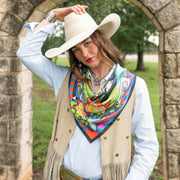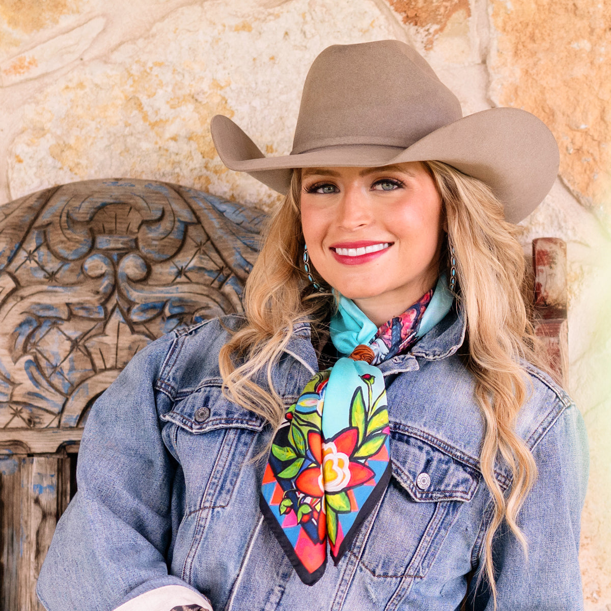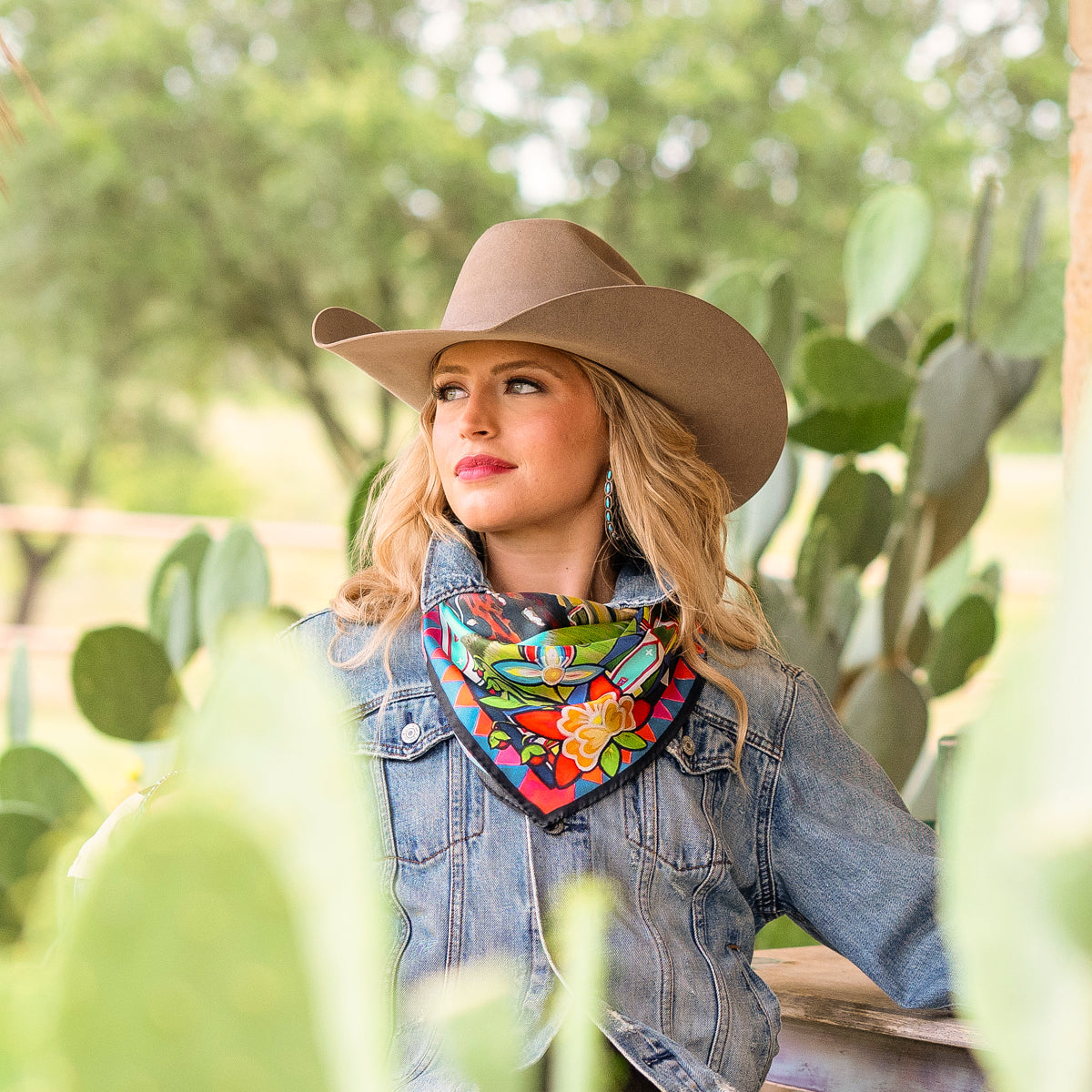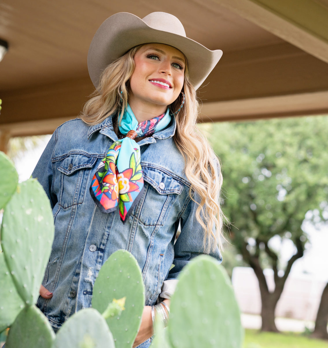 Fringe welcomes new artist Courtney Robertson to this year’s Artist Collection, bringing her storytelling brushstrokes and rich cultural awareness to silk. Her art draws from personal history and shared heritage, with a style rooted in the traditions of the American West.