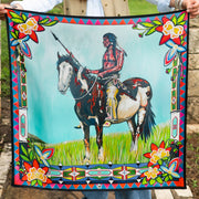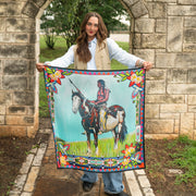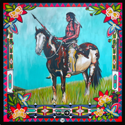 The Wait features a Native American figure on horseback—poised, focused, and patient. Inspired by the tension and stillness of a hunting moment, this piece is filled with quiet power. Courtney captures the strength in stillness and the resilience passed down through generations.