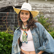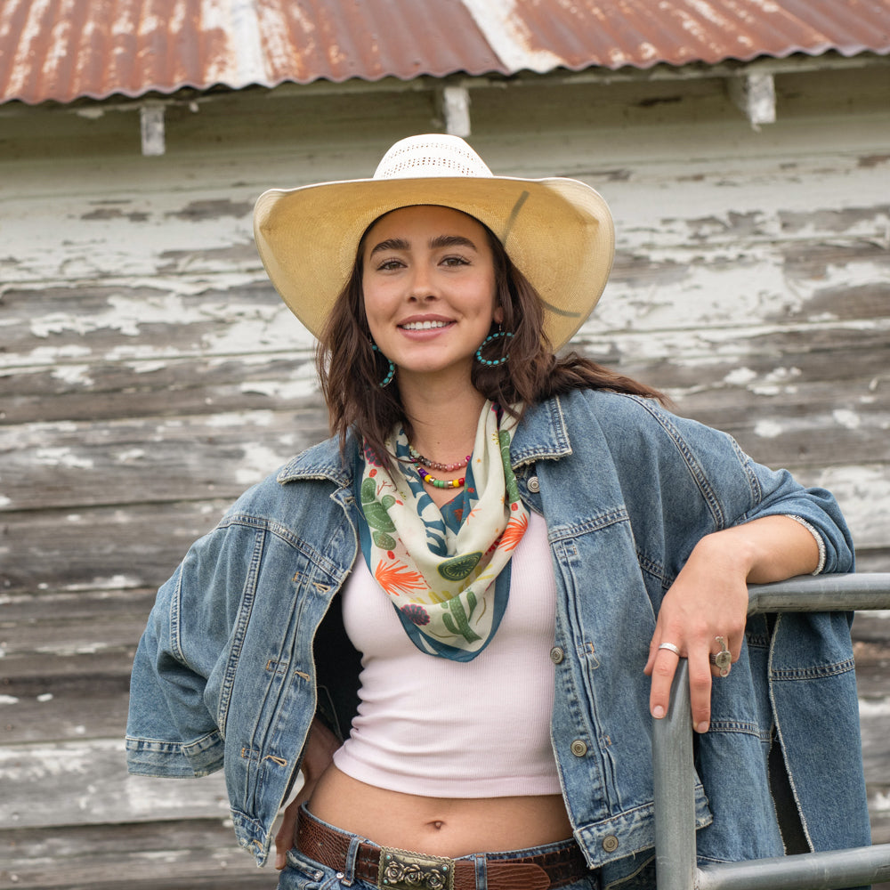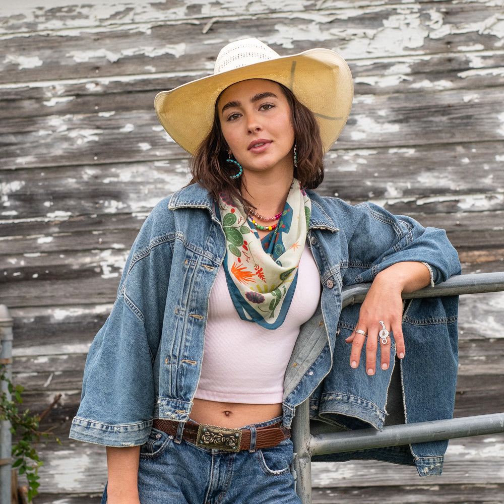 We searched high and low to find the perfect bandana fabric! A blend of mostly cotton, but enough silk to keep it sheer and lightweight. Our bandanas are super-duper soft and ready to wear straight from the packaging!