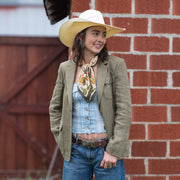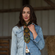 Available in our Shorty size of 26"x26". The standard cotton bandana is 22"x22", we made ours a few more inches longer to have that extra room to tie with or to add a scarf slide.