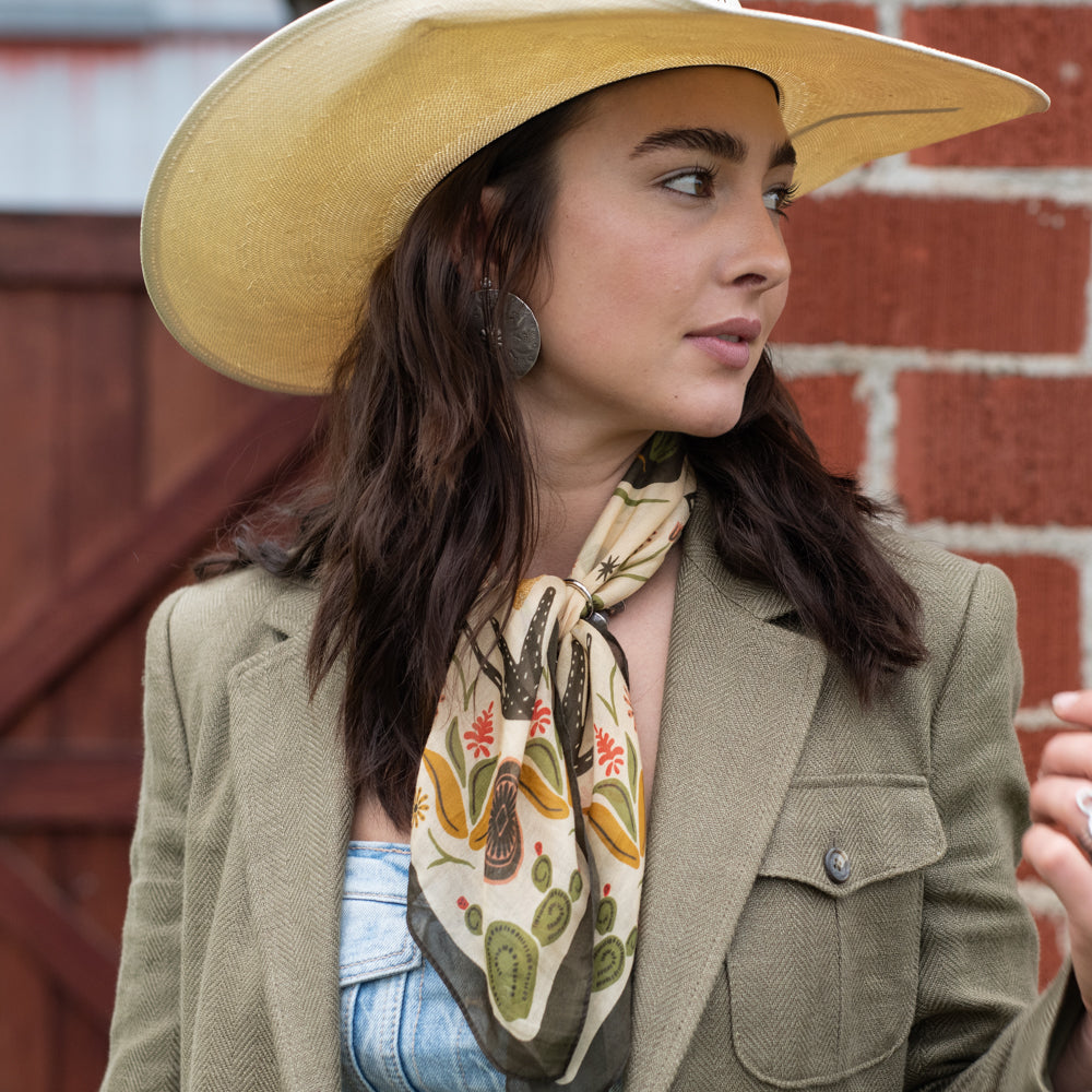 We searched high and low to find the perfect bandana fabric! A blend of mostly cotton, but enough silk to keep it sheer and lightweight. Our bandanas are super-duper soft and ready to wear straight from the packaging!