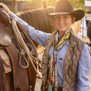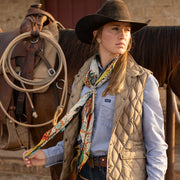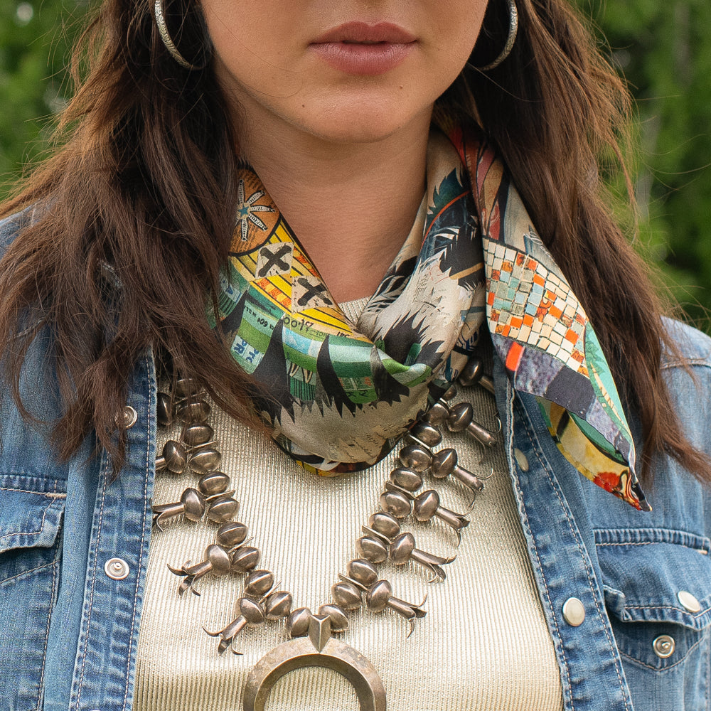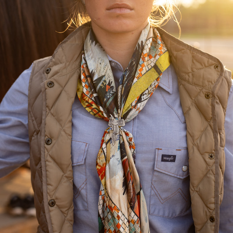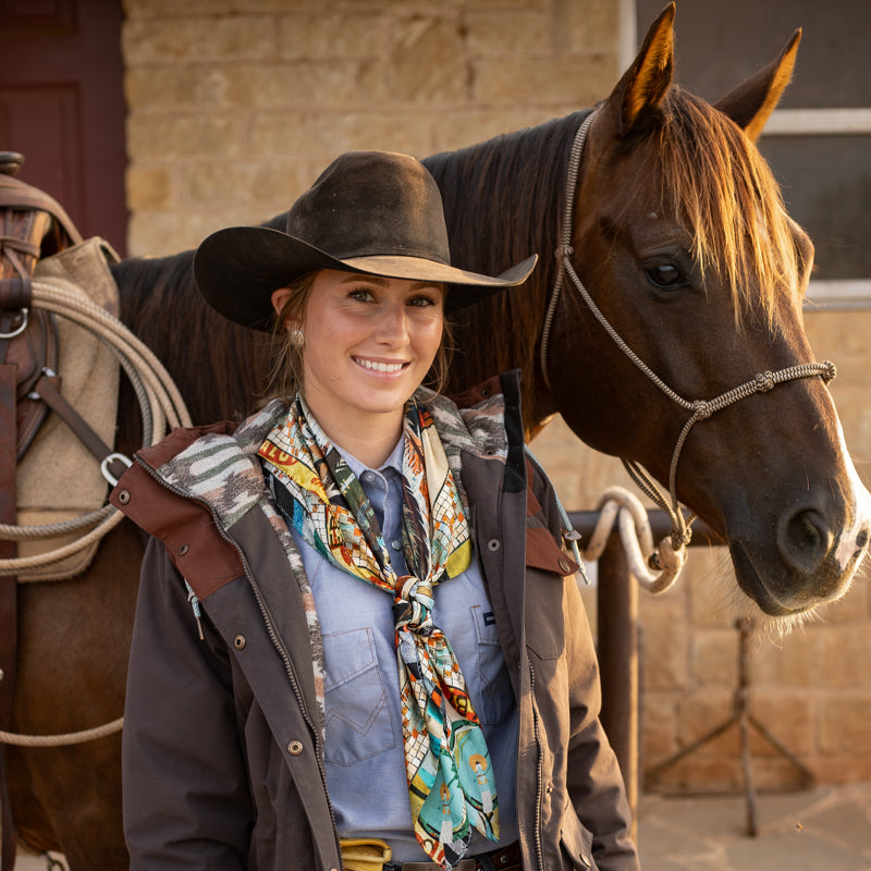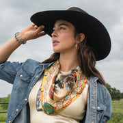 Turning Point is a wild rag in our Artist Collection by Dolan Geiman. All we can say is wow! This gorgeous piece has such amazing colors and layers, it is sure to be your go to over and over again this season!