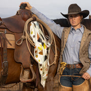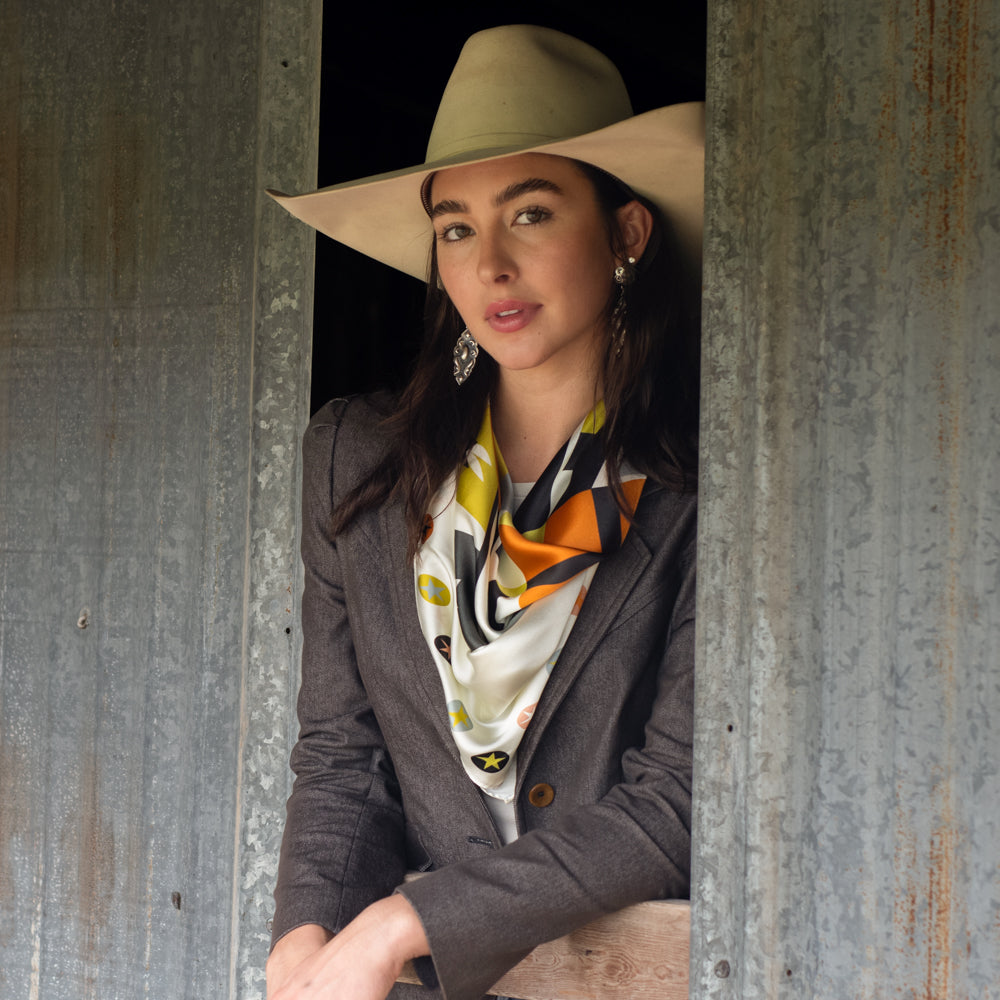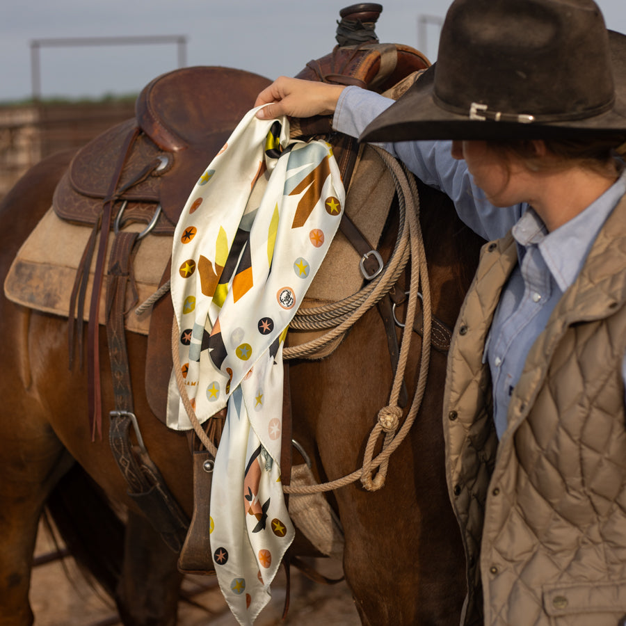 *Please note, all Jon's scarves are on a heavier 14mm satin silk that set his wild rags apart. Don't miss out on these limited collector silk scarves, sure to be passed down as a family heirloom. Click here to read more about Jon Flaming and his work.