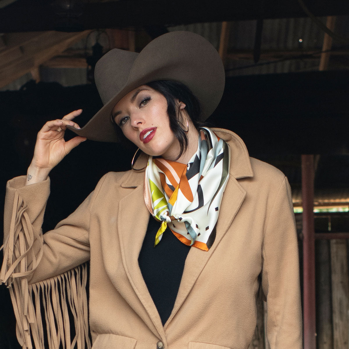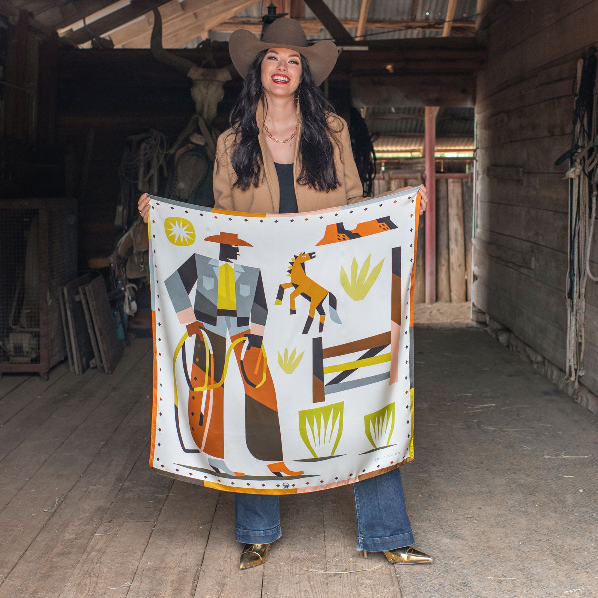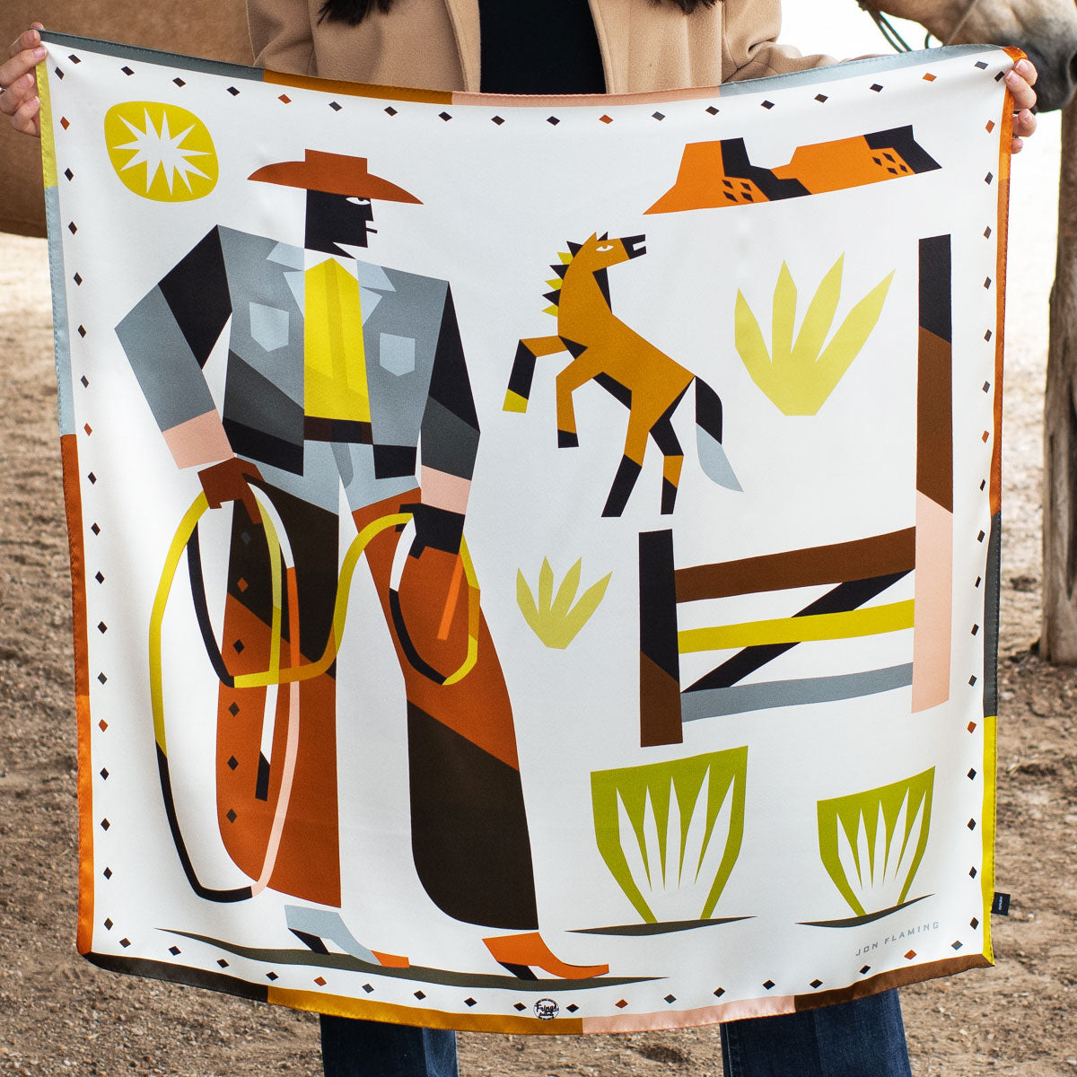 *Please note, all Jon's scarves are on a heavier 14mm satin silk that set his wild rags apart. Don't miss out on these limited collector silk scarves, sure to be passed down as a family heirloom. Click here to read more about Jon Flaming and his work.