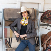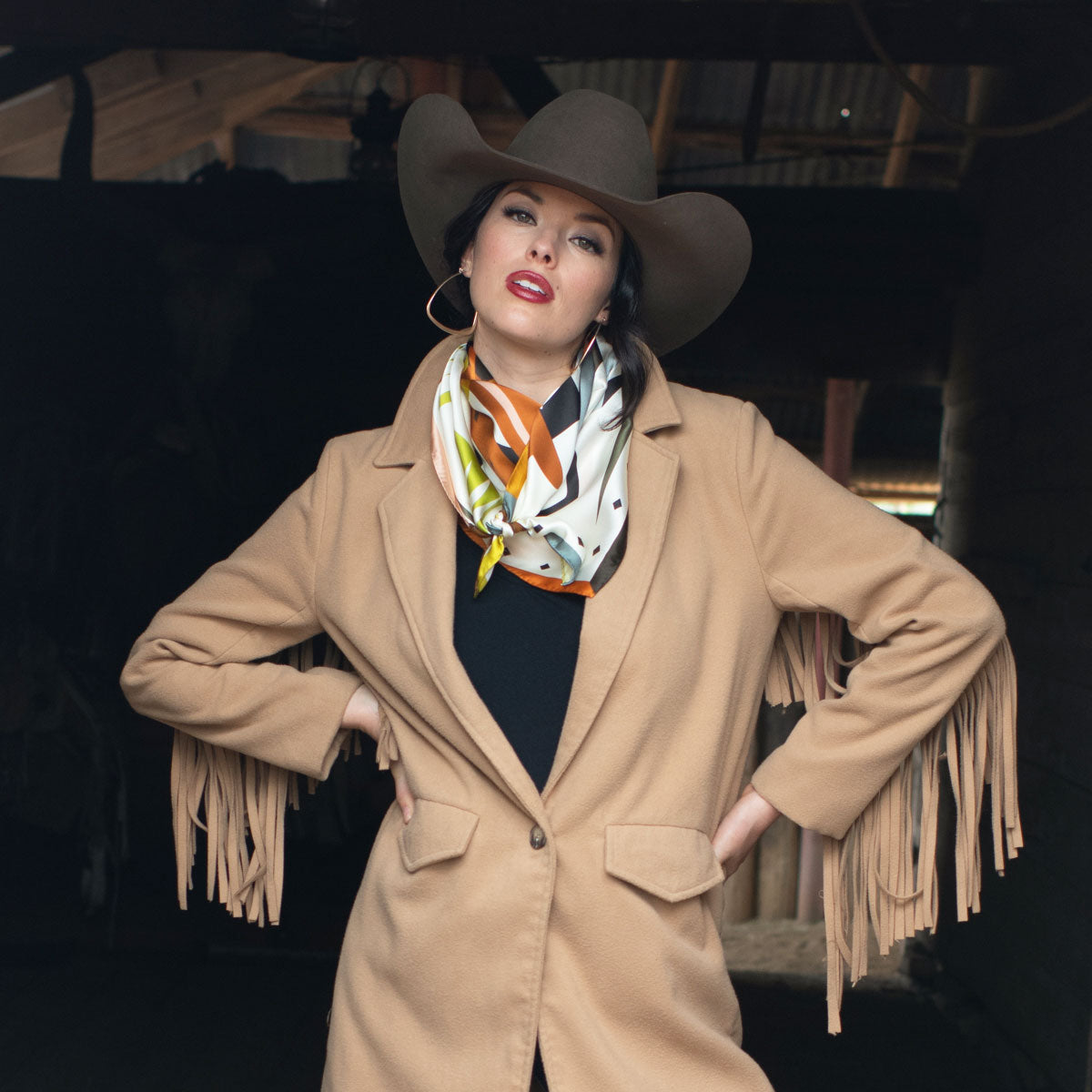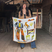 Jon's unique style and bold colors create one-of-a-kind pieces that are a must have for your scarf collection. Shown here, Bronco Buster, one of four pieces Jon has in this year's Fringe Artist Collection.