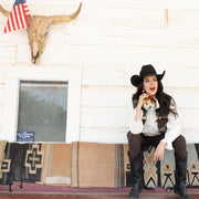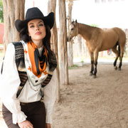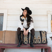 Jon's unique style and bold colors create one-of-a-kind pieces that are a must have for your scarf collection. Shown here, West Texas Buck, one of four pieces Jon has in this year's Fringe Artist Collection.