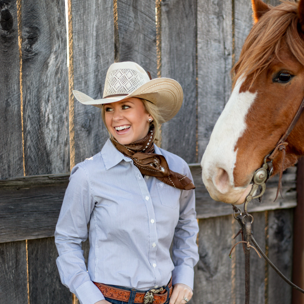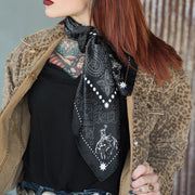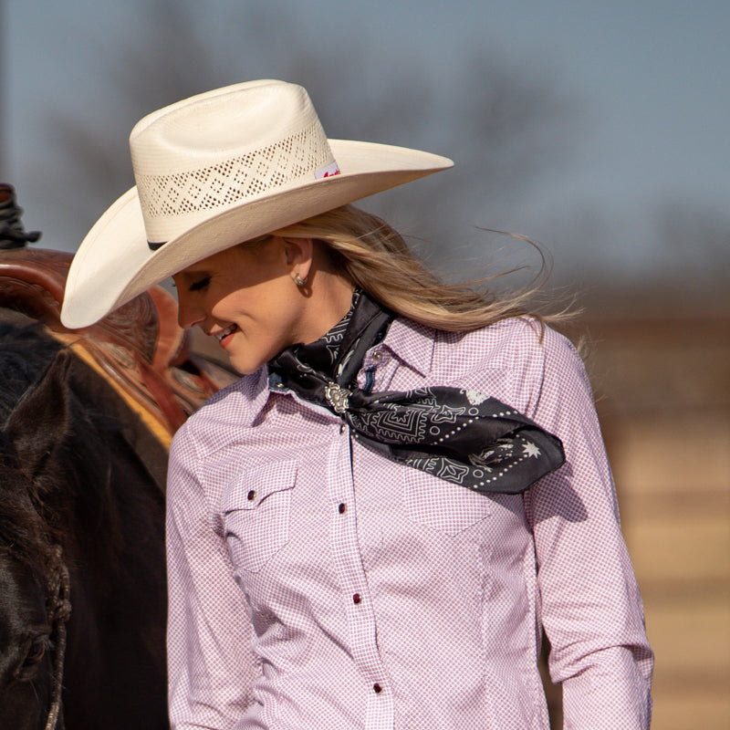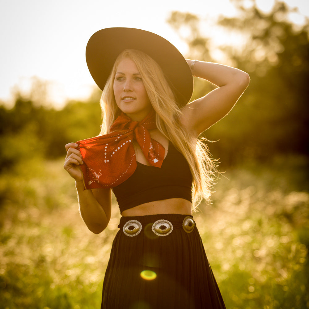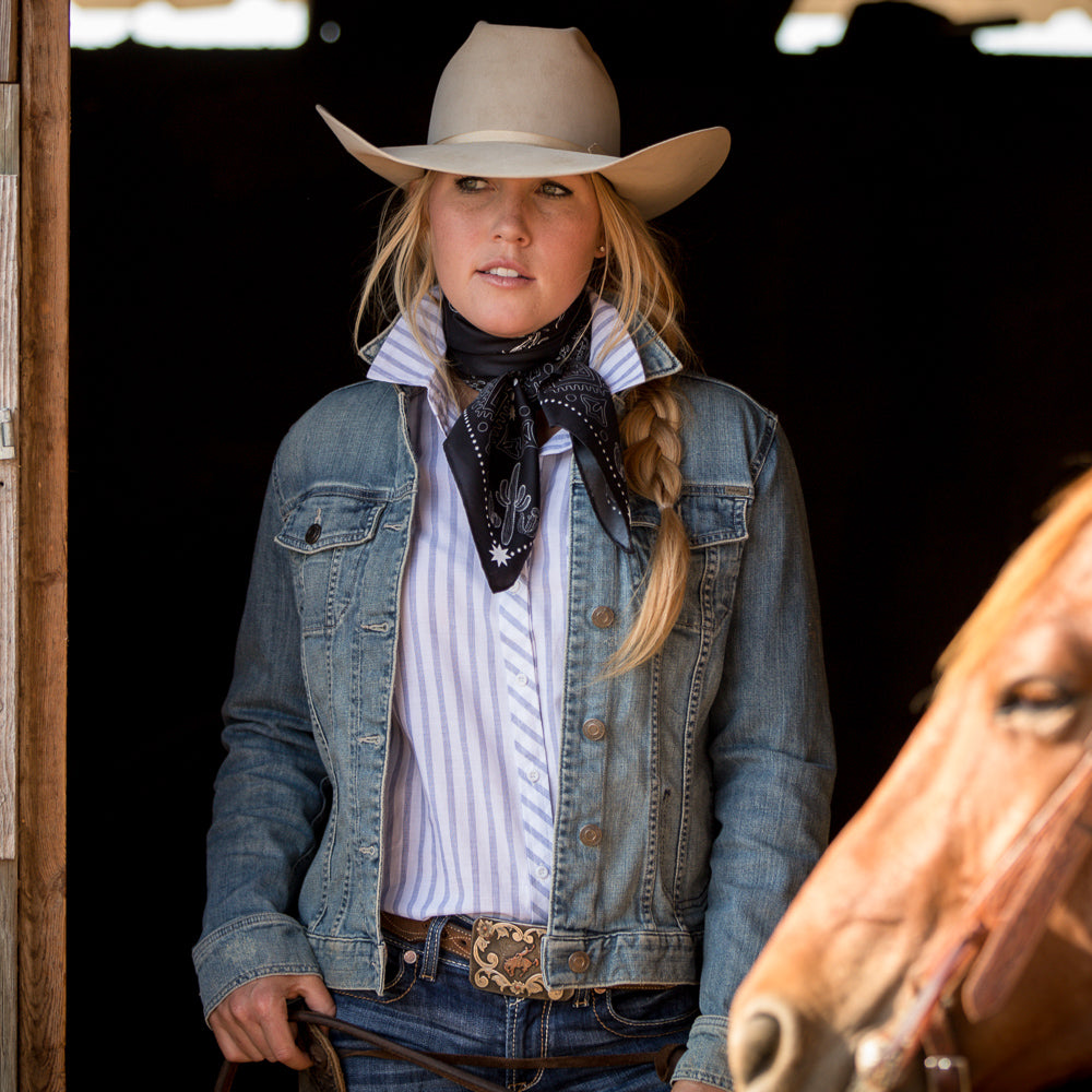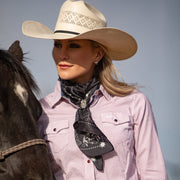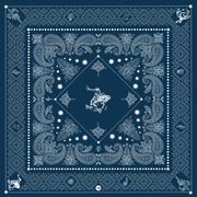 We wanted a very traditional bandana look, but with a little "out-west" feel. We added some bronc riders to the corners and cactus around the edges!