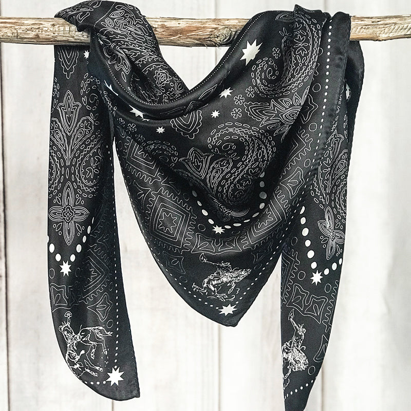 Bandito in our Long-Tall size of 35" x 35" is 100% Satin Silk. A definite classic that goes with about anything in your closet. Perfect for ranching, dressing up or taking to the streets!