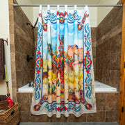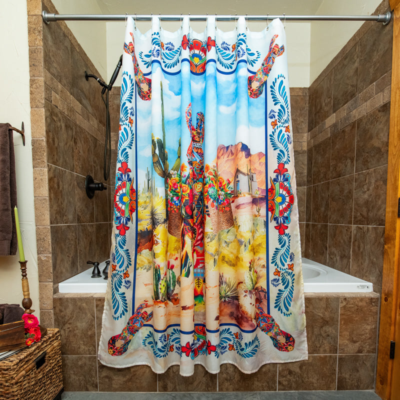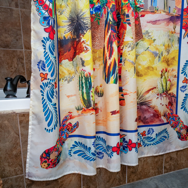 Bring some of your favorite Fringe Scarf designs HOME! The Fernando, has that down South vibe with it has beautiful colors that will bring life to any bathroom. Designed by Amy Moorhouse.