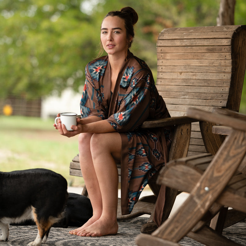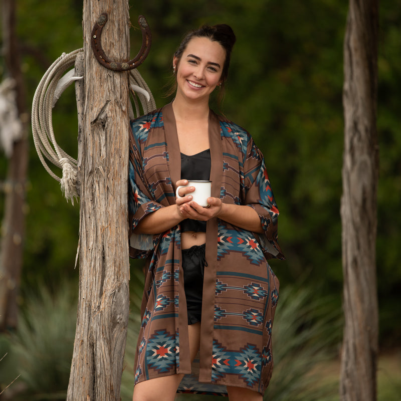 Just in! The Telluride kimono style robe, perfect for lounging around or getting ready in the morning. You can also throw it on with your favorite cami, skinny jeans and some tall top boots for a night out. Whether you are going from your bed to grab some coffee, or covering up after a swim, this versatile piece is sure to turn some heads.