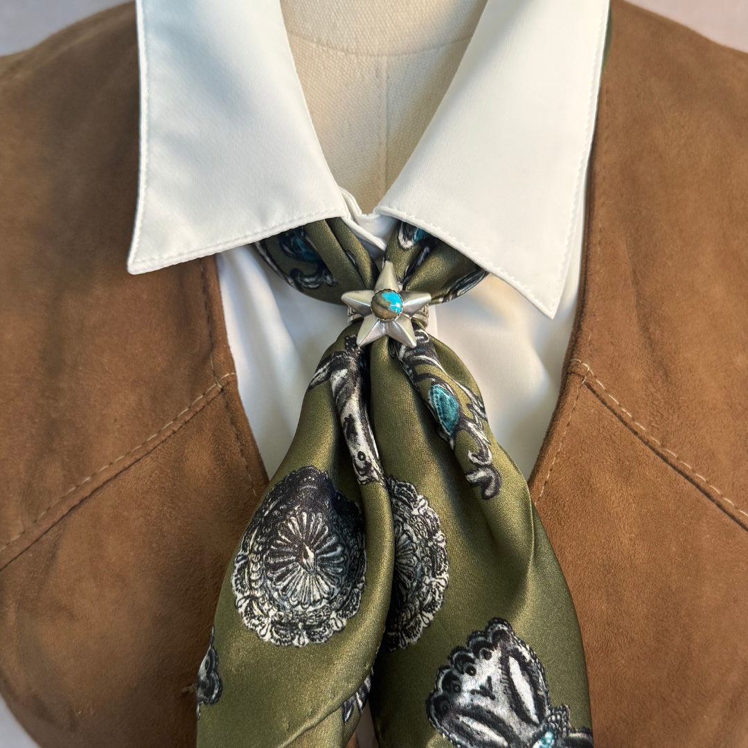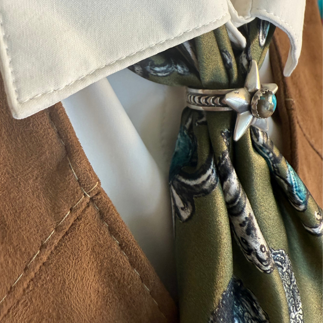 Bring a little western edge to your wild rag with this bold and beautiful star slide. Featuring a sterling silver star accented with a striking piece of natural turquoise, this slide adds just the right amount of shine to your look.