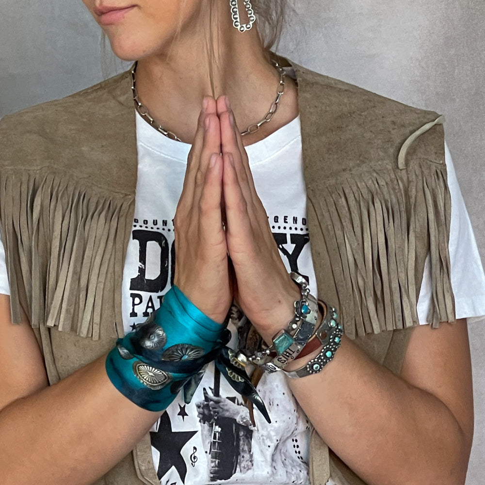 The Kingman Twilly is simple and easy to incorporate into any outfit.... from adding to your neckline to wrapping around your wrist several times along with some silver cuff bracelets. And don't forget adding a Fringe Twilly to your favorite purse handle. One of my all time favorite scarves is a Twilly I purchased years ago. A great way to add color for a more minimalist look!