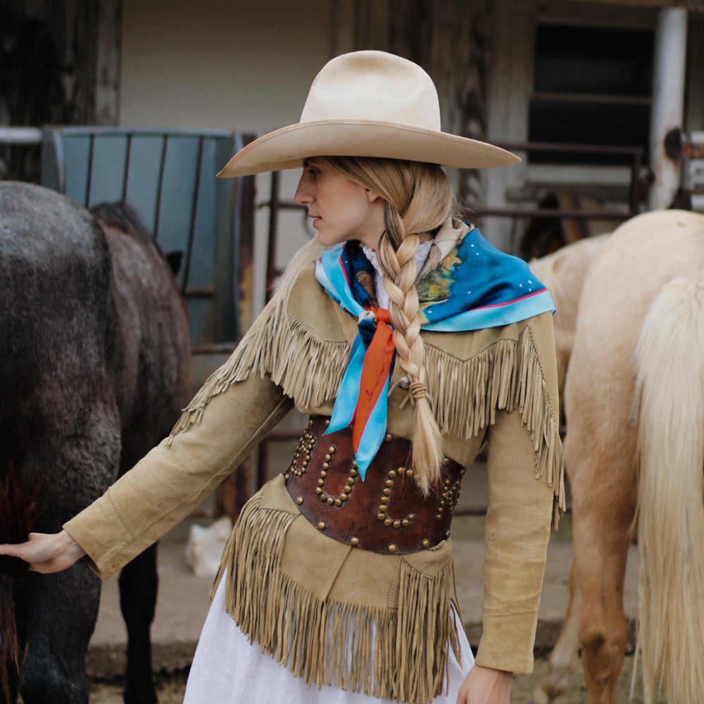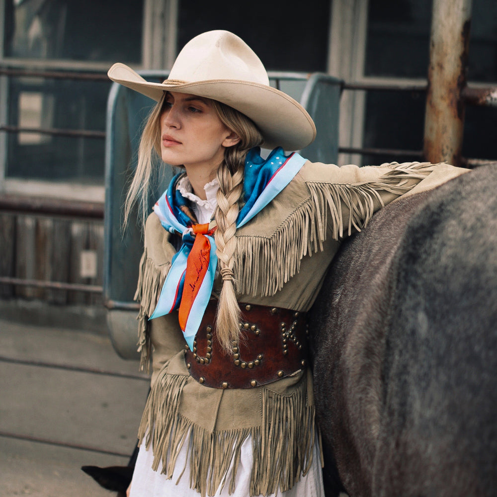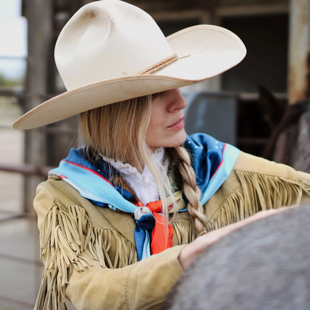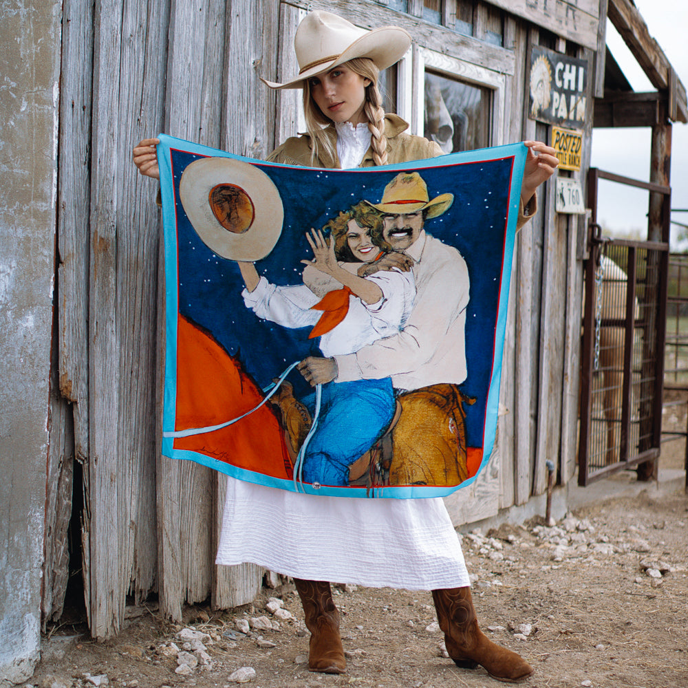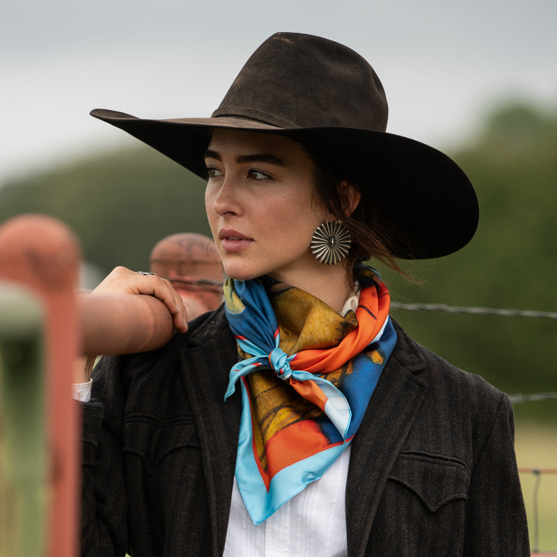 We would like to point out the heavier 14mm satin silk and hand rolled hem that sets this wild rag apart. This is a scarf that you will cherish forever as a collector's piece or family heirloom. Click here to read more about Donna.