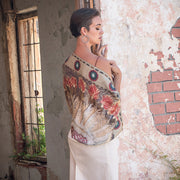 I have a vintage framed embroidered headdress that I found during one of my junking trips. It's one of my favorite pieces in my house and I wanted to use this as inspiration for the CrossPlains.