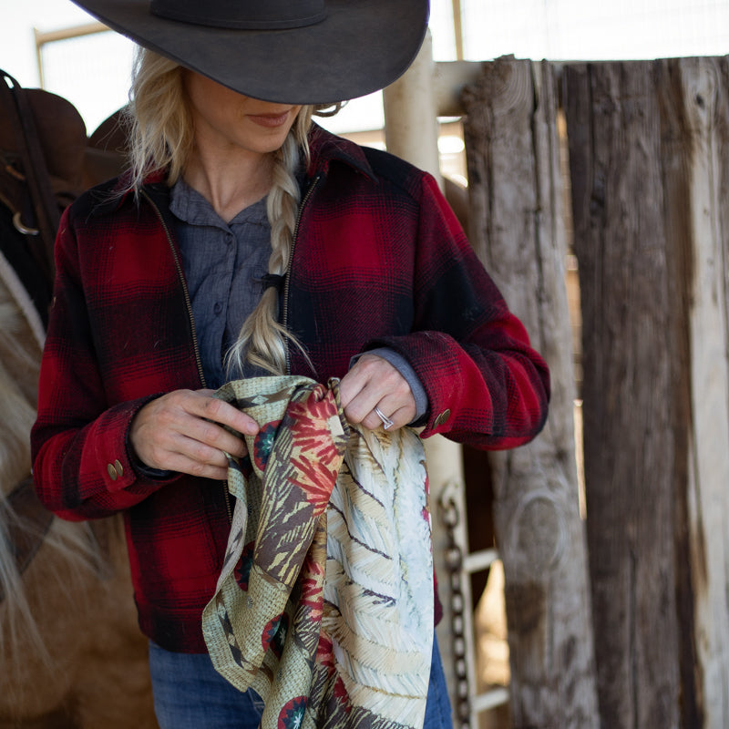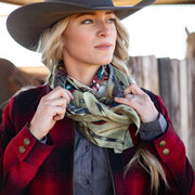 Tips: Tie it in a knot or tie it in a bow! Wrap this wild rag around twice and tie a knot or tie it in a bow, or wrap once and leave big and flowing for some drama. This scarf looks great as a belt or tied on a handbag. Just have fun and "...tie one on!"