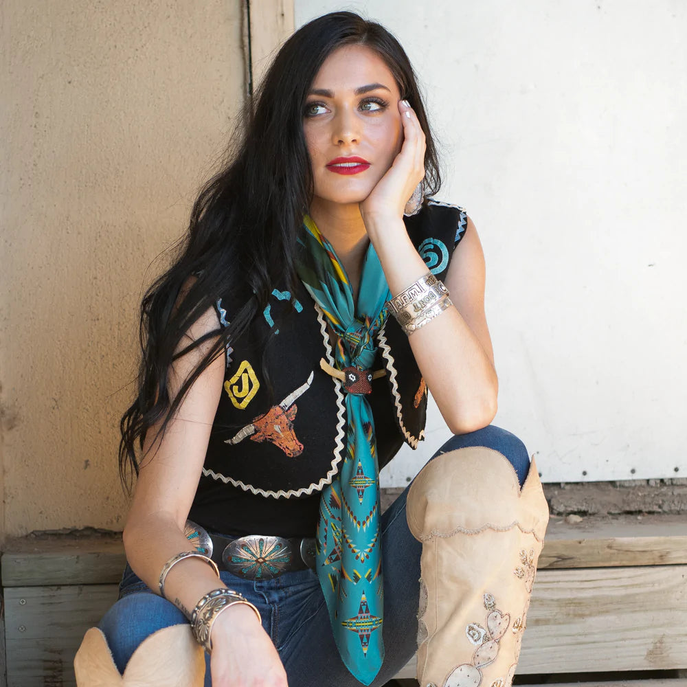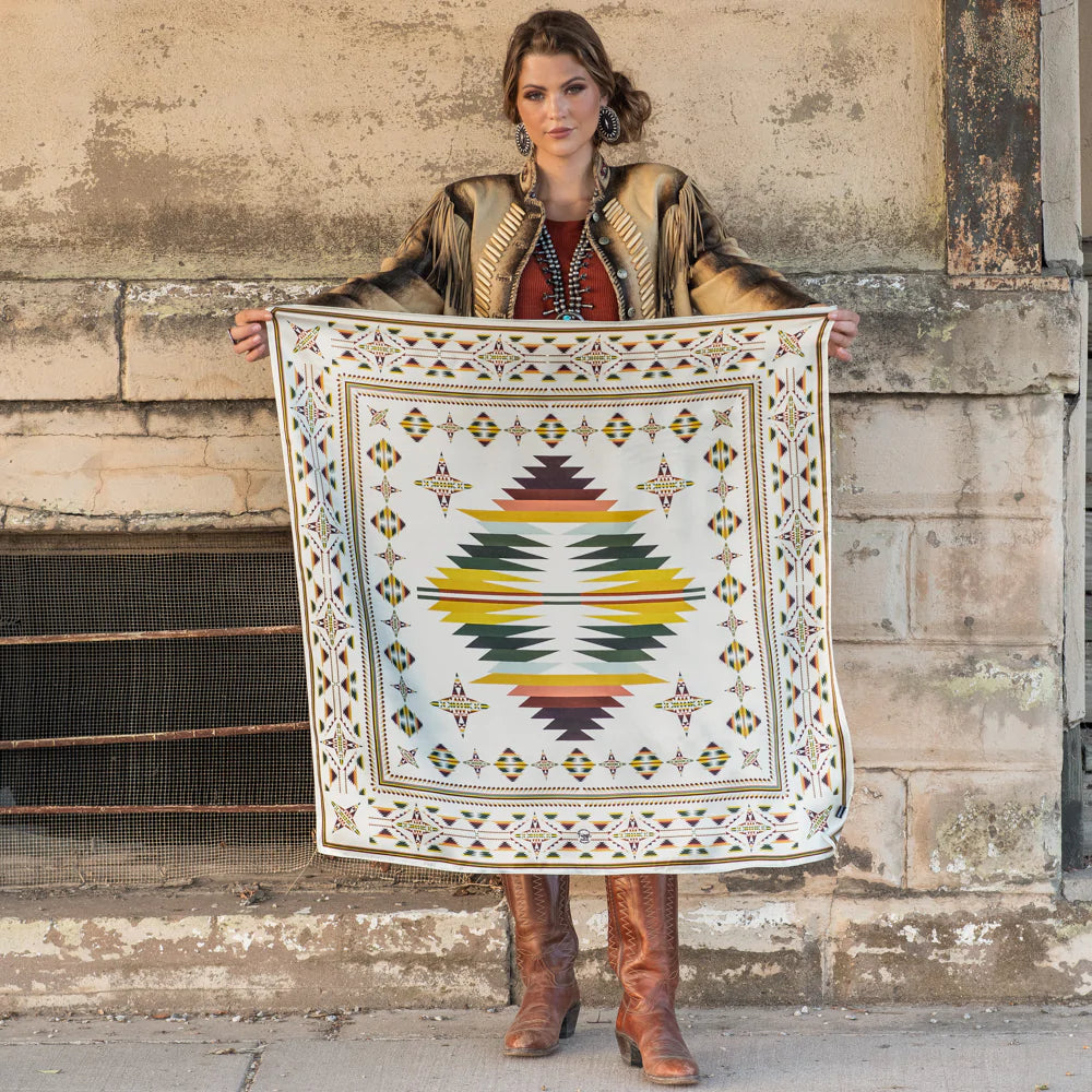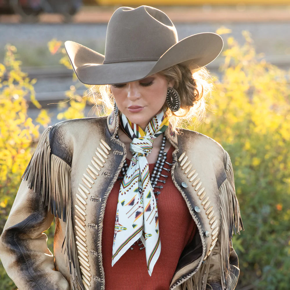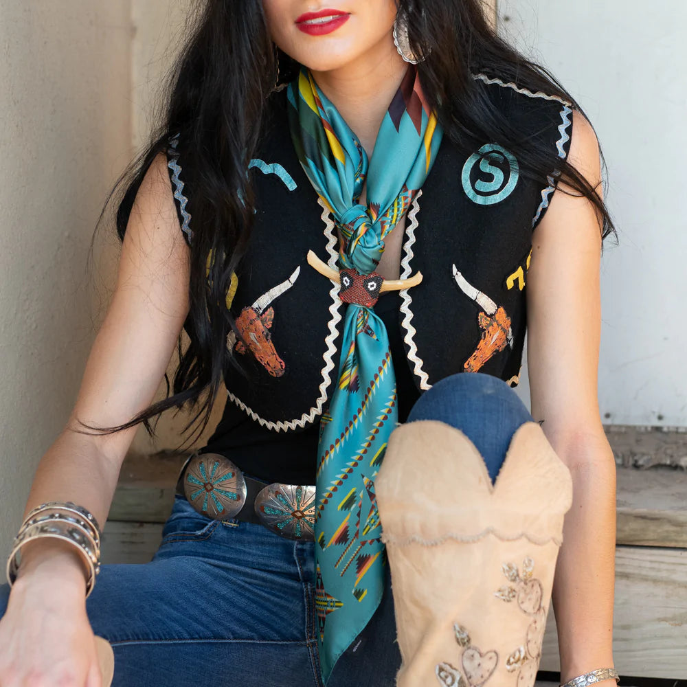 The Mesa has the perfect color combination! We love the traditional trade blanket look and feel. This is the perfect accessory to bring a lasting western story to your neck line.