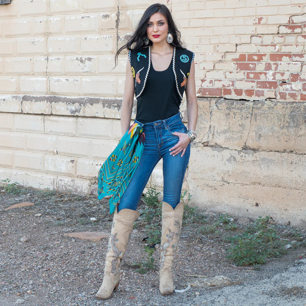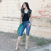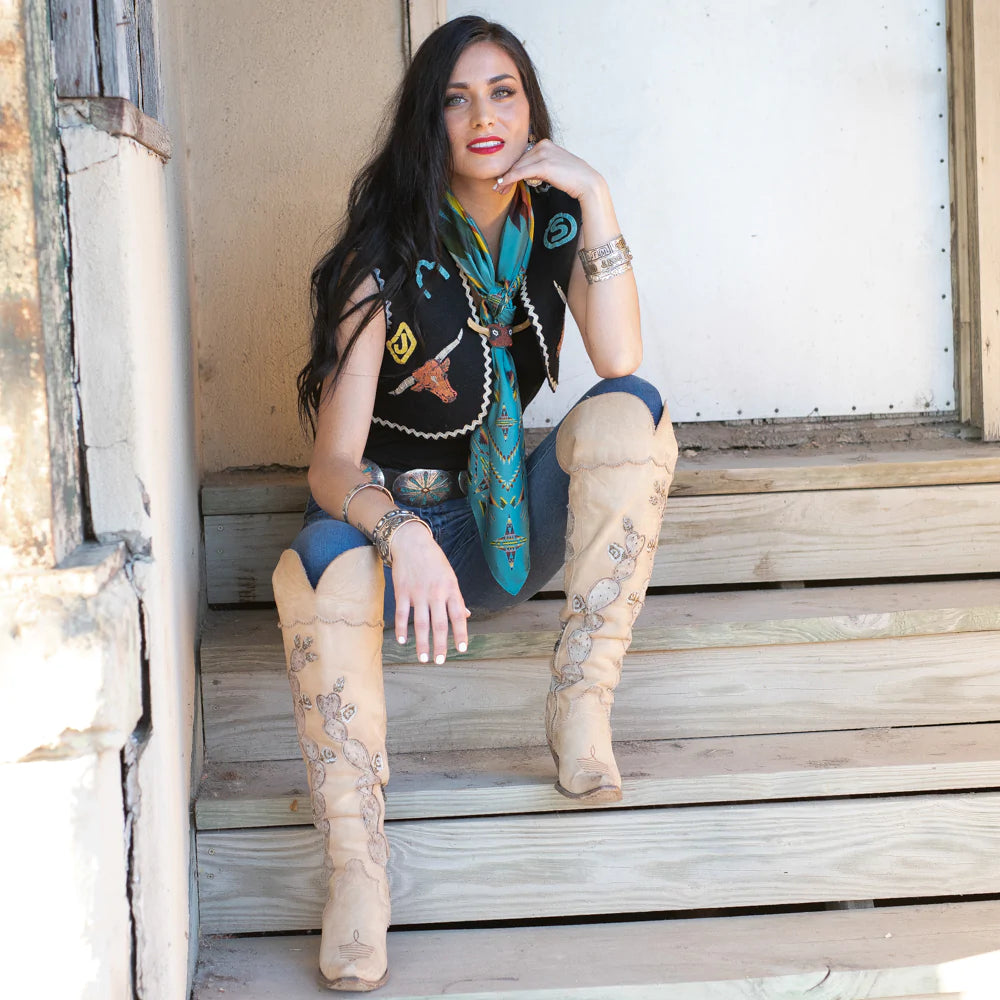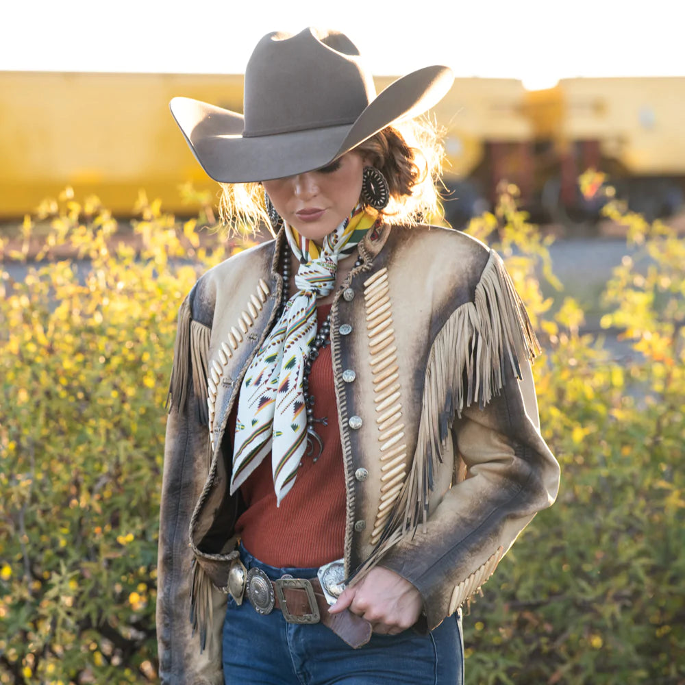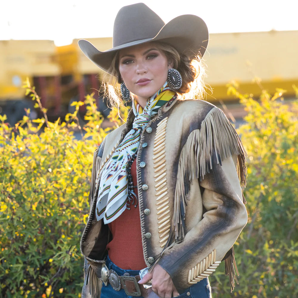 The Mesa has the perfect color combination! We love the traditional trade blanket look and feel. This is the perfect accessory to bring a lasting western story to your neck line.