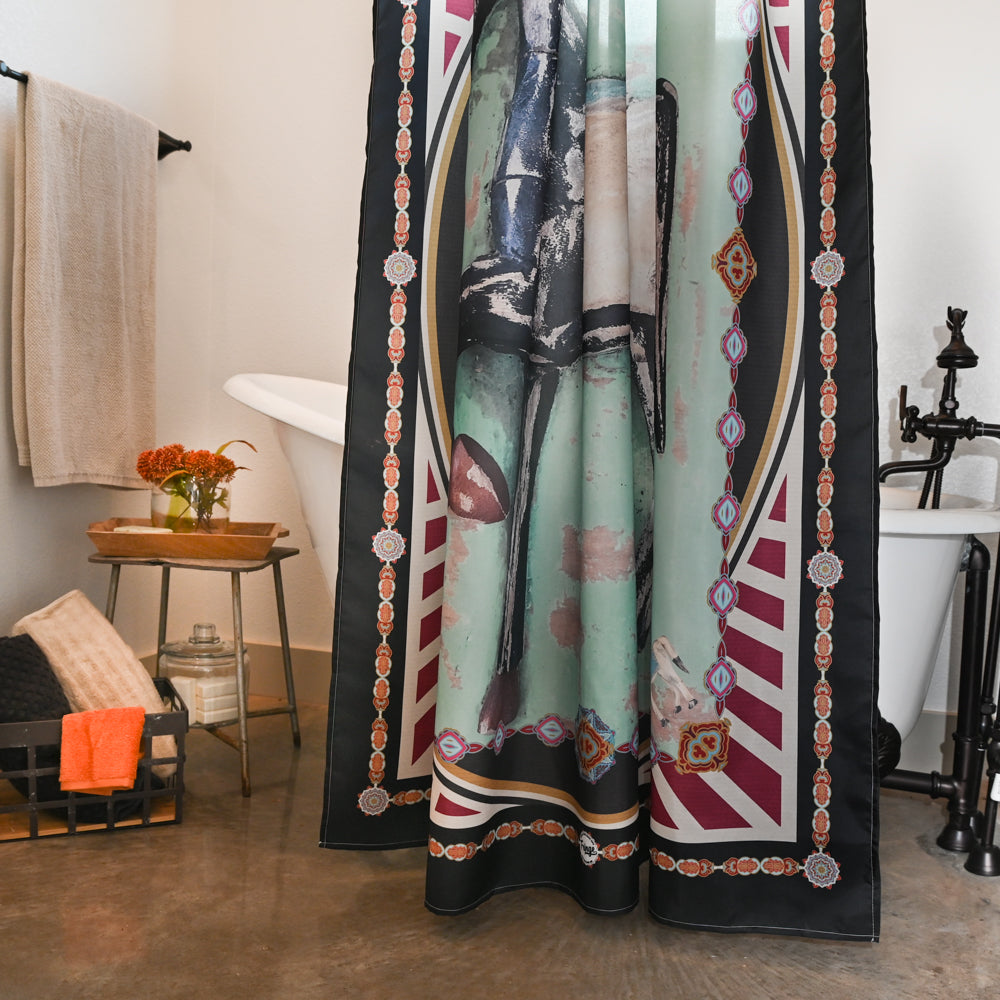Bring some of your favorite Fringe Scarf designs HOME! The Long Trot has nice transitional colors for a visual lift to any bathroom. One of the great sellers in our lineup of silk scarves, it's now available to add a great Western or English feel to any bathroom.