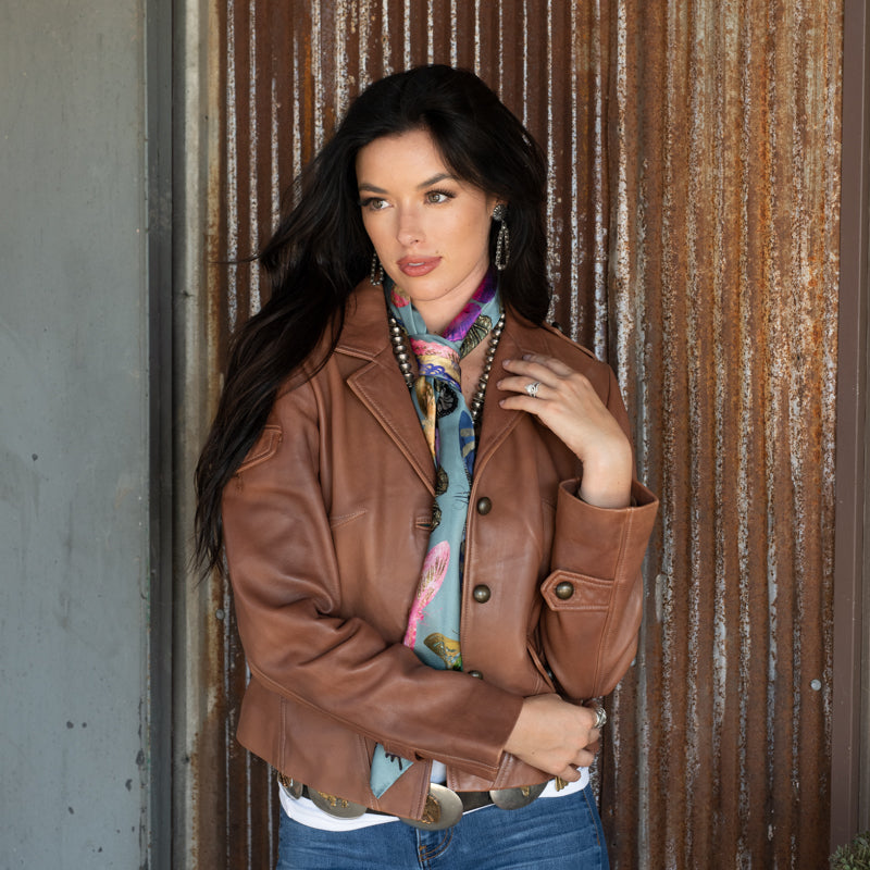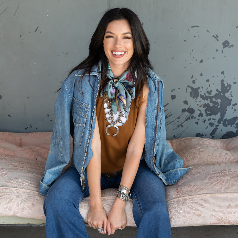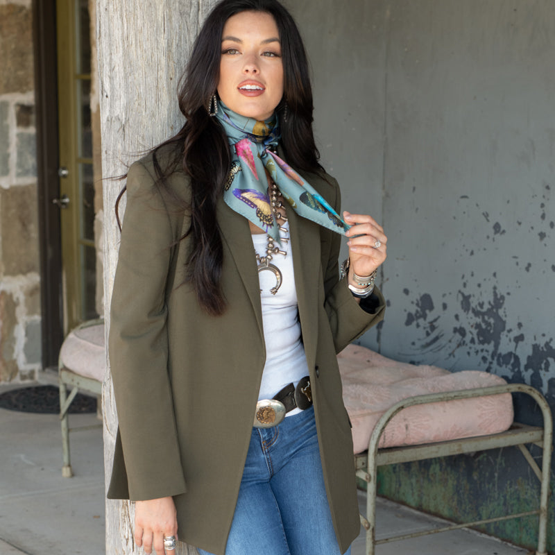 Tips: Just tie one on! Pair with a denim shirt, your favorite suit jacket, jeans and boots.