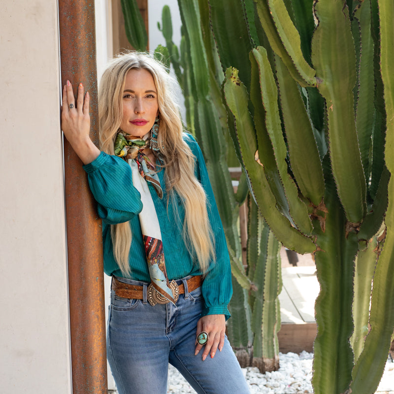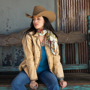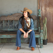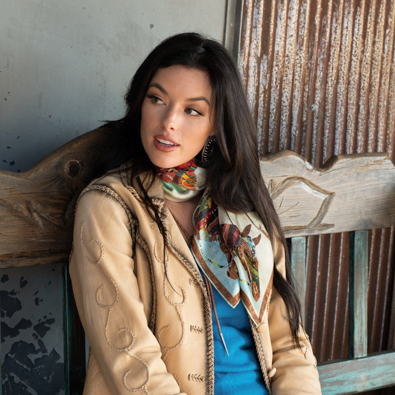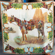 The Haute Horse comes in both our Long-Tall and our Shorty sizes and is 100% Satin Silk. Designed by my friend Amy Moorhouse, this one is full of detail. You might want to grab a coffee and sit down with this scarf for an hour or so to see what you can find hidden in this collage design - using pieces of jewelry, rugs, tapestry and collectibles.
