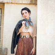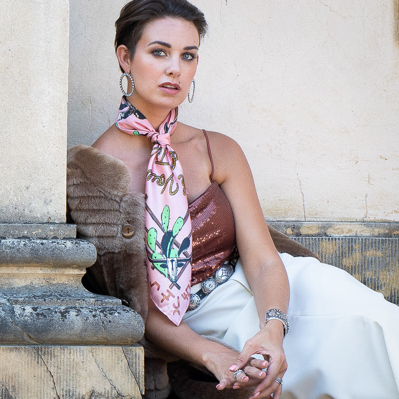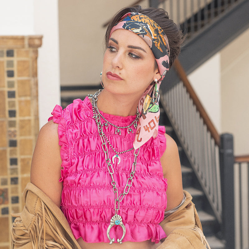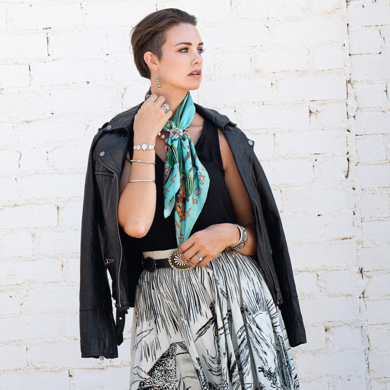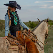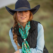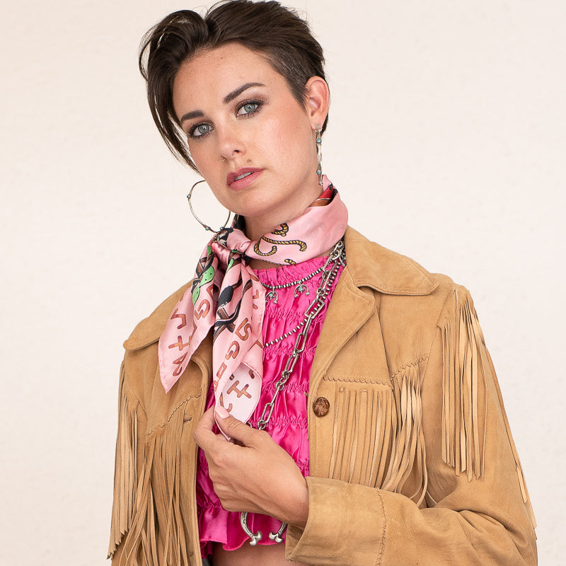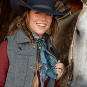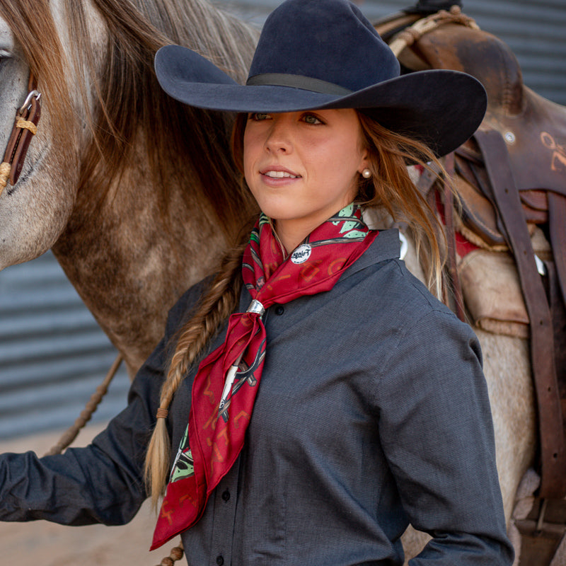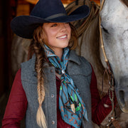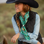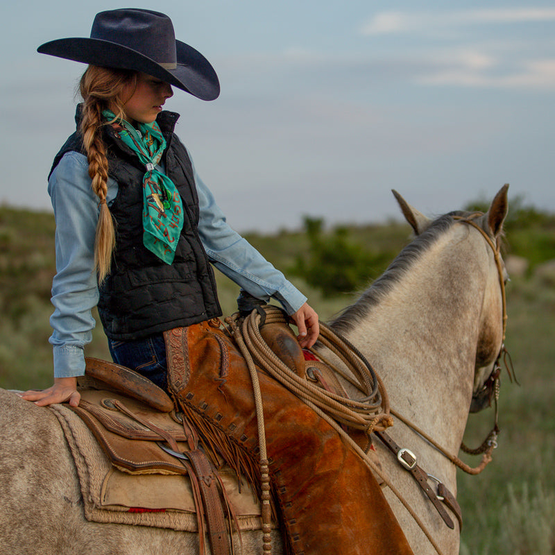 Tips: Tie it in a knot or tie it in a bow! Wrap this Shorty Wild Rag around once and tie a square knot or tie it in a bow. For a more tailored look, bring both ends down through a single hole.