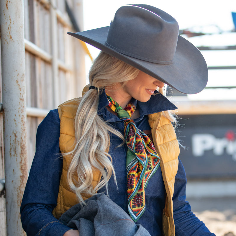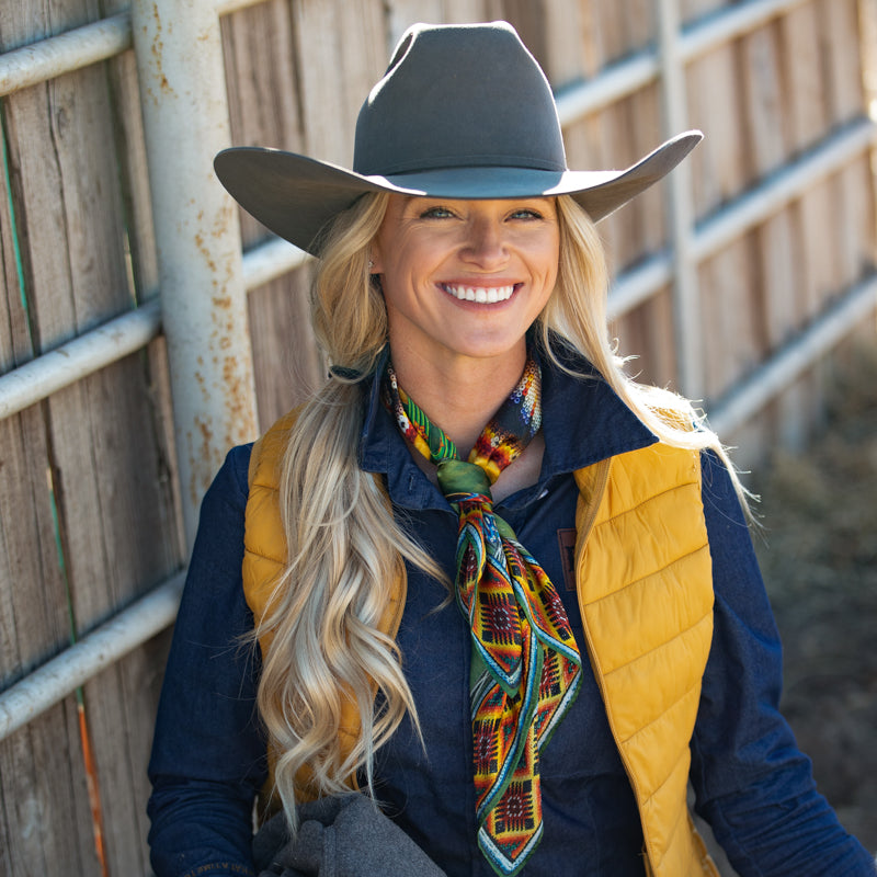The Seed Bead isn't just one of our favorites, it IS our new favorite! We designed this bright, multi-colored scarf in the smaller 26"x26" Shorty size because of its versatility. This Wild Rag is 100% 12mm satin silk. The Seed Bead uses just that, seed bead artwork.