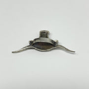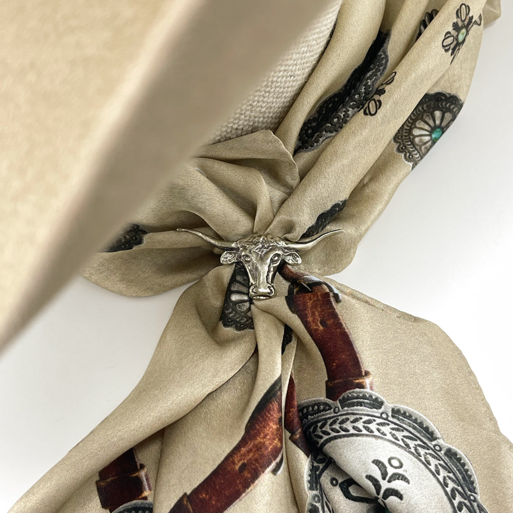The Longhorn is a brand new slide and we are so excited to add it to our great line of scarf accessories! Outfitted with our favorite half-circle back to allow for a close fit without turning. Custom designed wax mold just for Fringe Scarves.