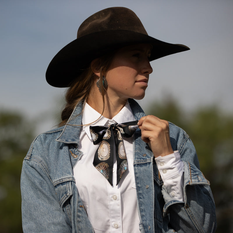 The Big Concho Twilly is simple and easy to incorporate into any outfit.... from adding to your neckline to wrapping around your wrist several times along with some silver cuff bracelets. And don't forget adding a Fringe Twilly to your favorite purse handle. One of my all time favorite scarves is a Twilly I purchased years ago. A great way to add color for a more minimalist look!