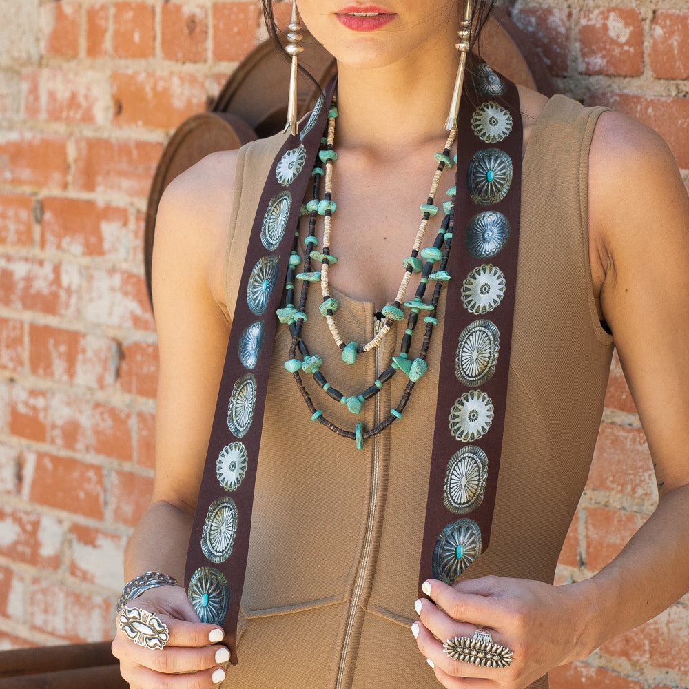 The Big Concho Twilly is the latest addition to our line up scarves. Simple and easy to incorporate into any outfit.... from adding to your neckline to wrapping around your wrist several times along with some silver cuff bracelets. And don't forget adding a Fringe Twilly to your favorite purse handle. One of my all time favorite scarves is a Twilly I purchased years ago. A great way to add color for a more minimalist look!