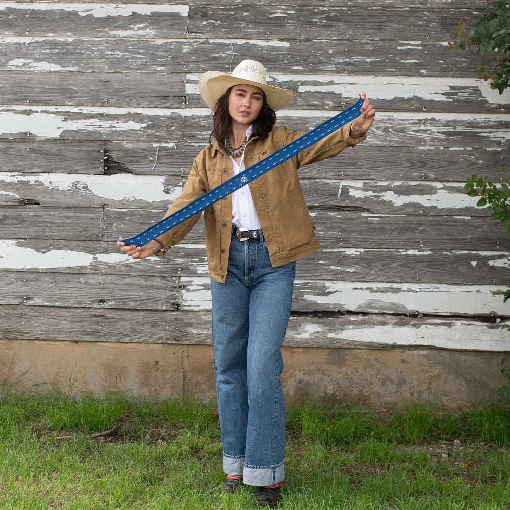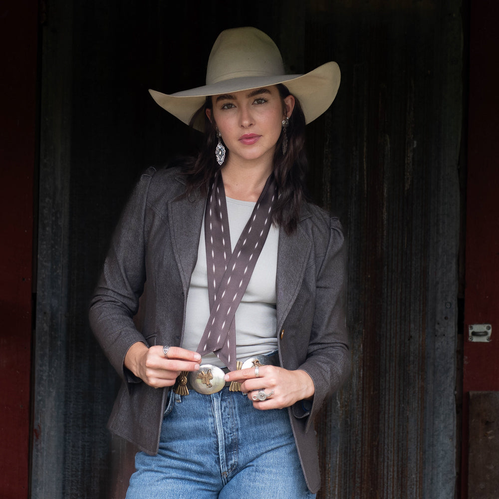 The Buckstitch Twilly is one of the latest additions to our line up of twillies. Simple and easy to incorporate into any outfit.... from adding to your neckline to wrapping around your wrist several times along with some silver cuff bracelets. And don't forget adding a Fringe Twilly to your favorite purse handle. One of my all time favorite scarves is a Twilly I purchased years ago. A great way to add color for a more minimalist look!