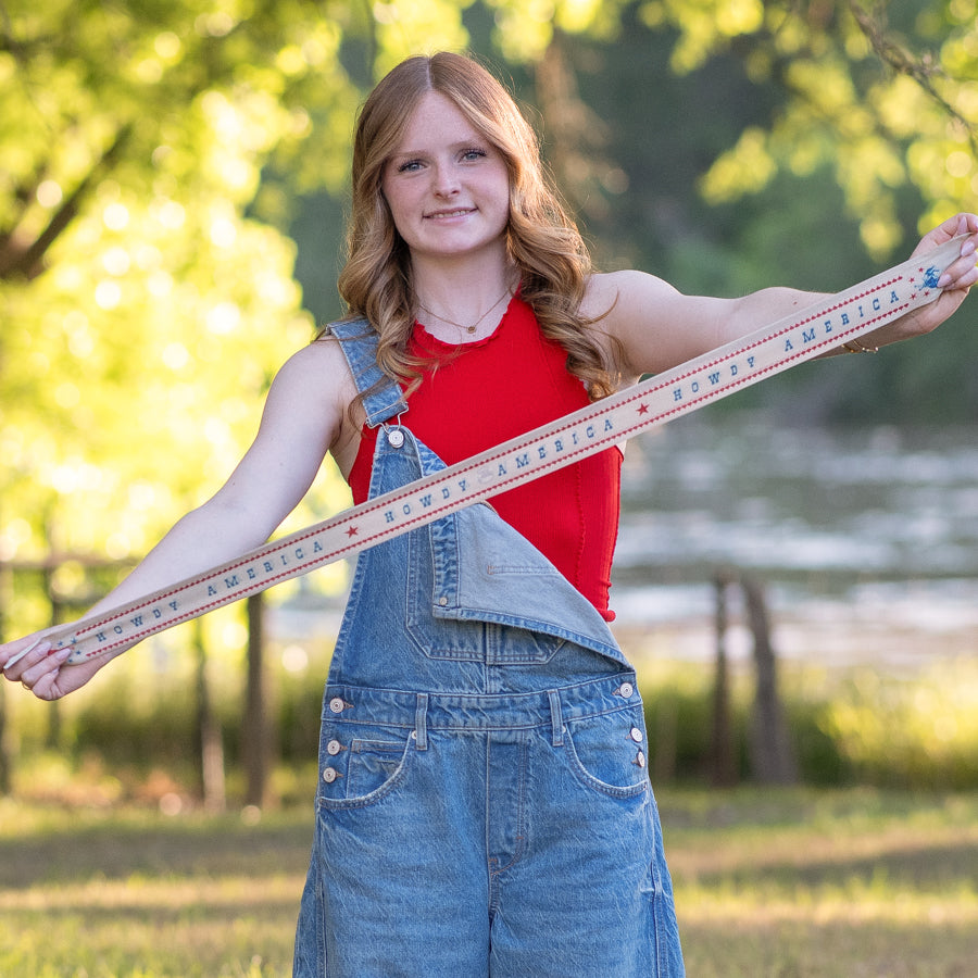 The Howdy America Twilly is red, white, and rodeo-ready—perfect for summer nights, backroad adventures, and celebrating the land of the free.