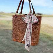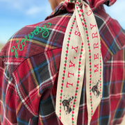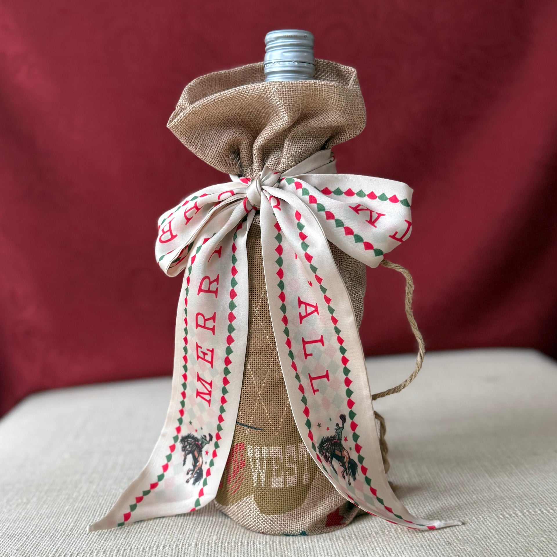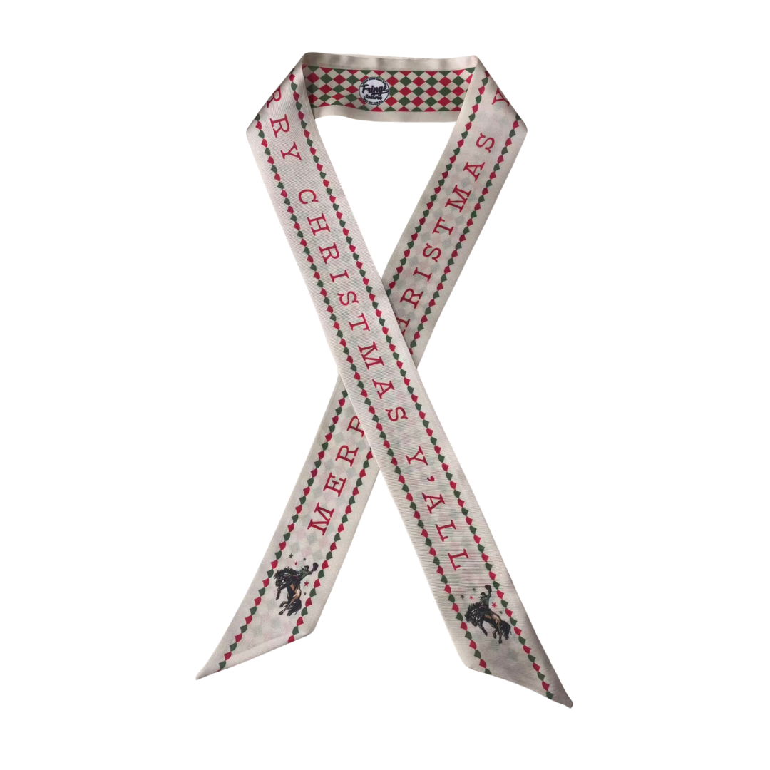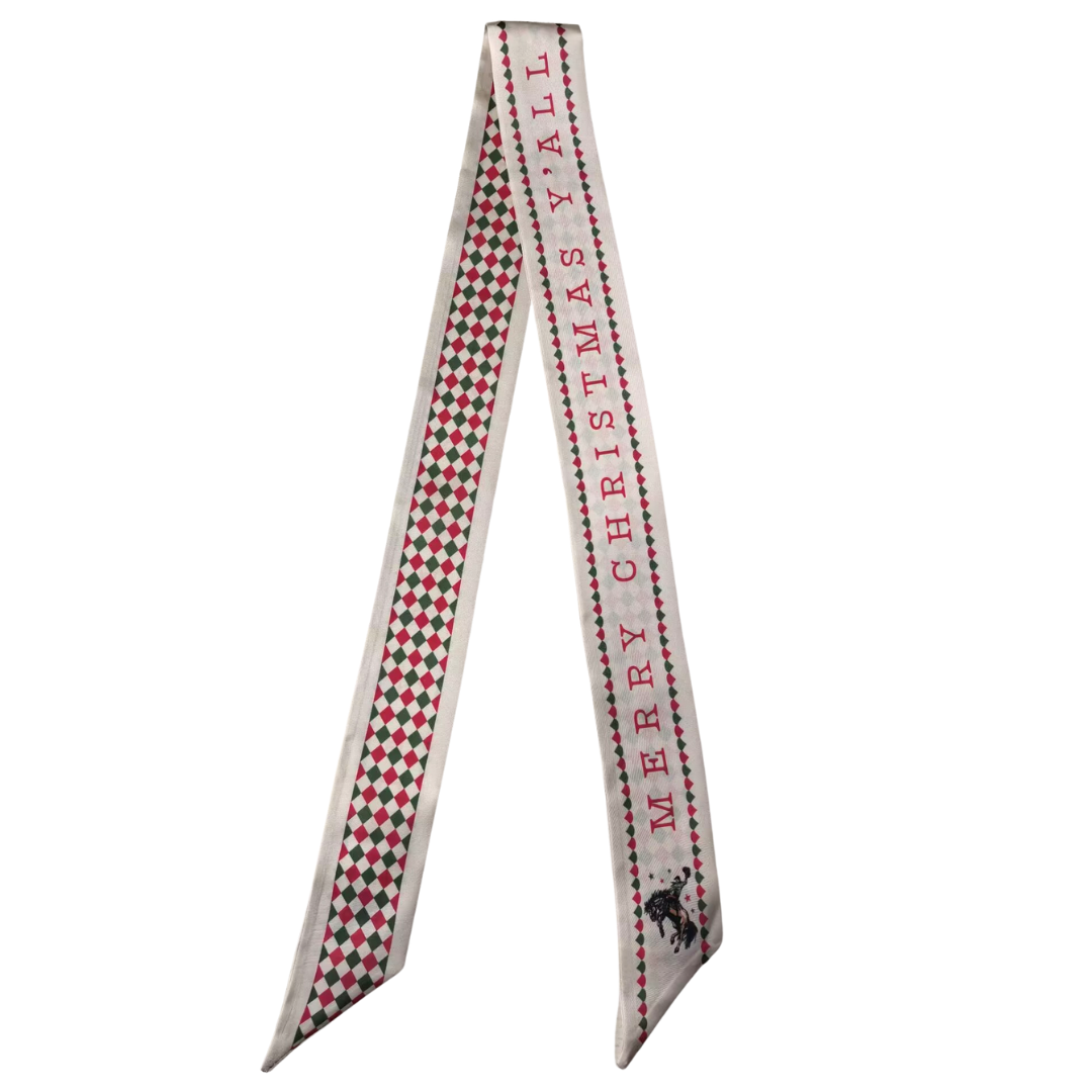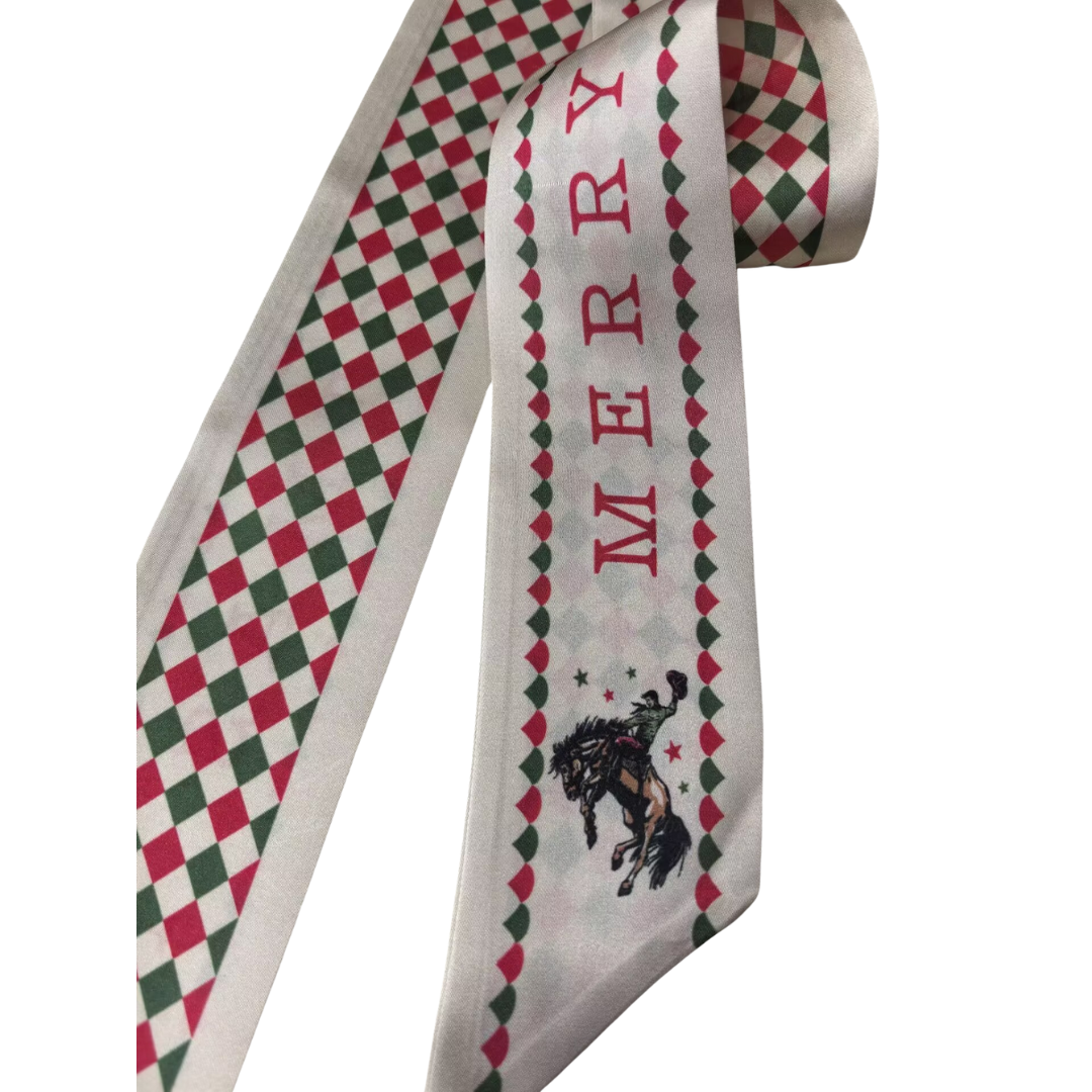 Western, festive, and full of holiday cheer - this two-sided Twilly features bold “Merry Christmas Y’all” lettering on the front paired with a red + green gingham back. A bucking bronc rides right into the season, making this the perfect  accessory for those who love to celebrate Christmas western-style.