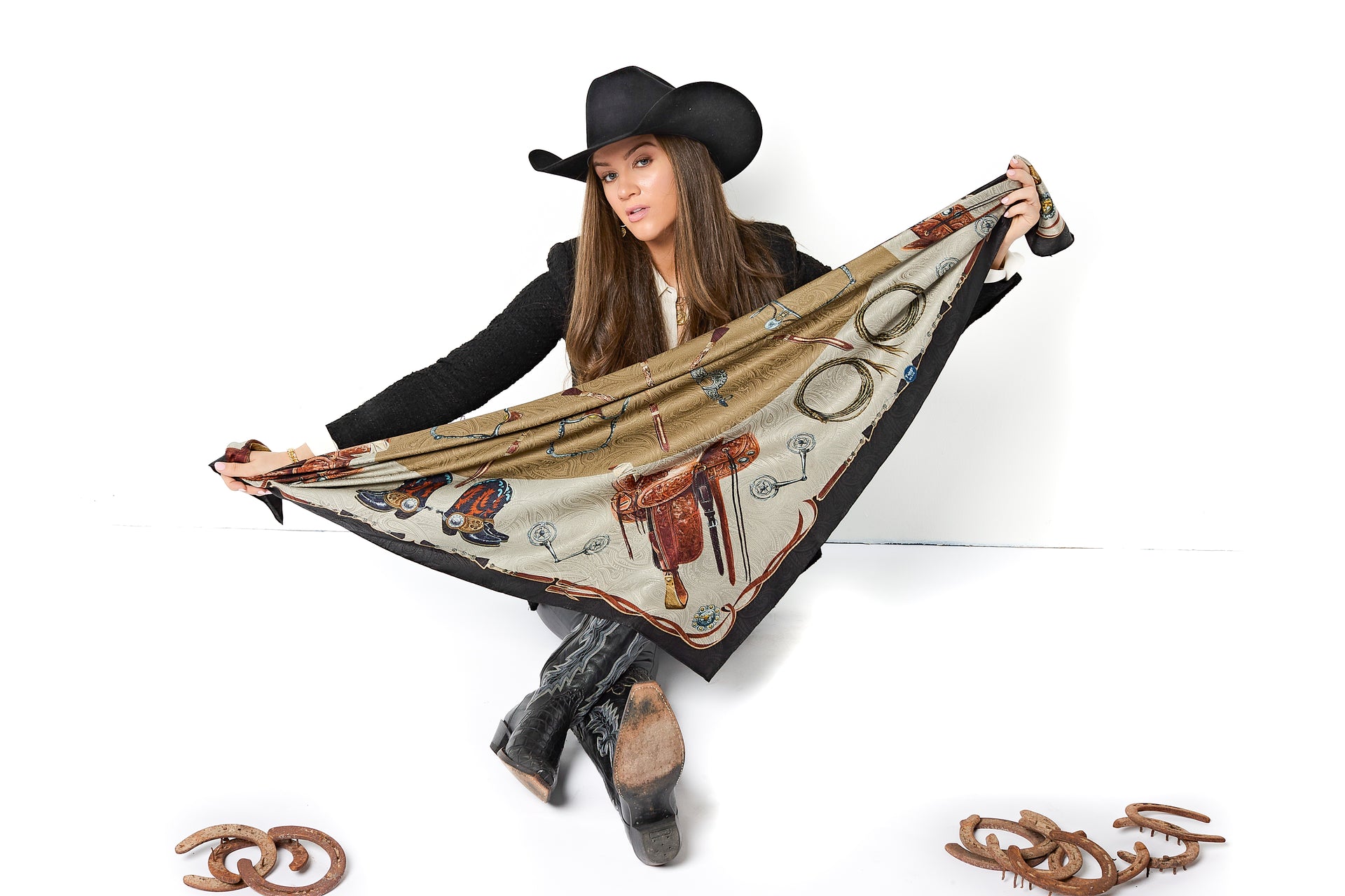 After his rodeo career, he shifted into the creative world in Fort Worth, where he became a partner in a leading advertising agency and spent years shaping brand, product, and creative strategy for some of the most recognizable names in the Western and lifestyle space. His background merges heritage, understanding, and high-level design - elevating Clara’s artwork into refined, gallery-worthy compositions worthy of luxury silk.