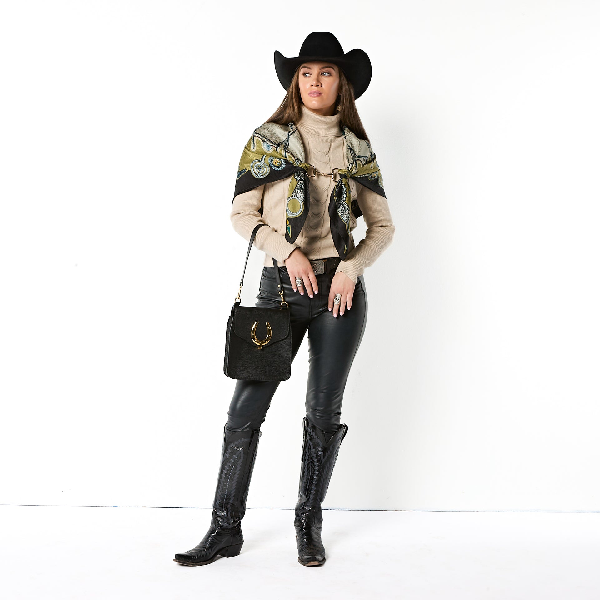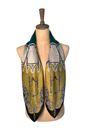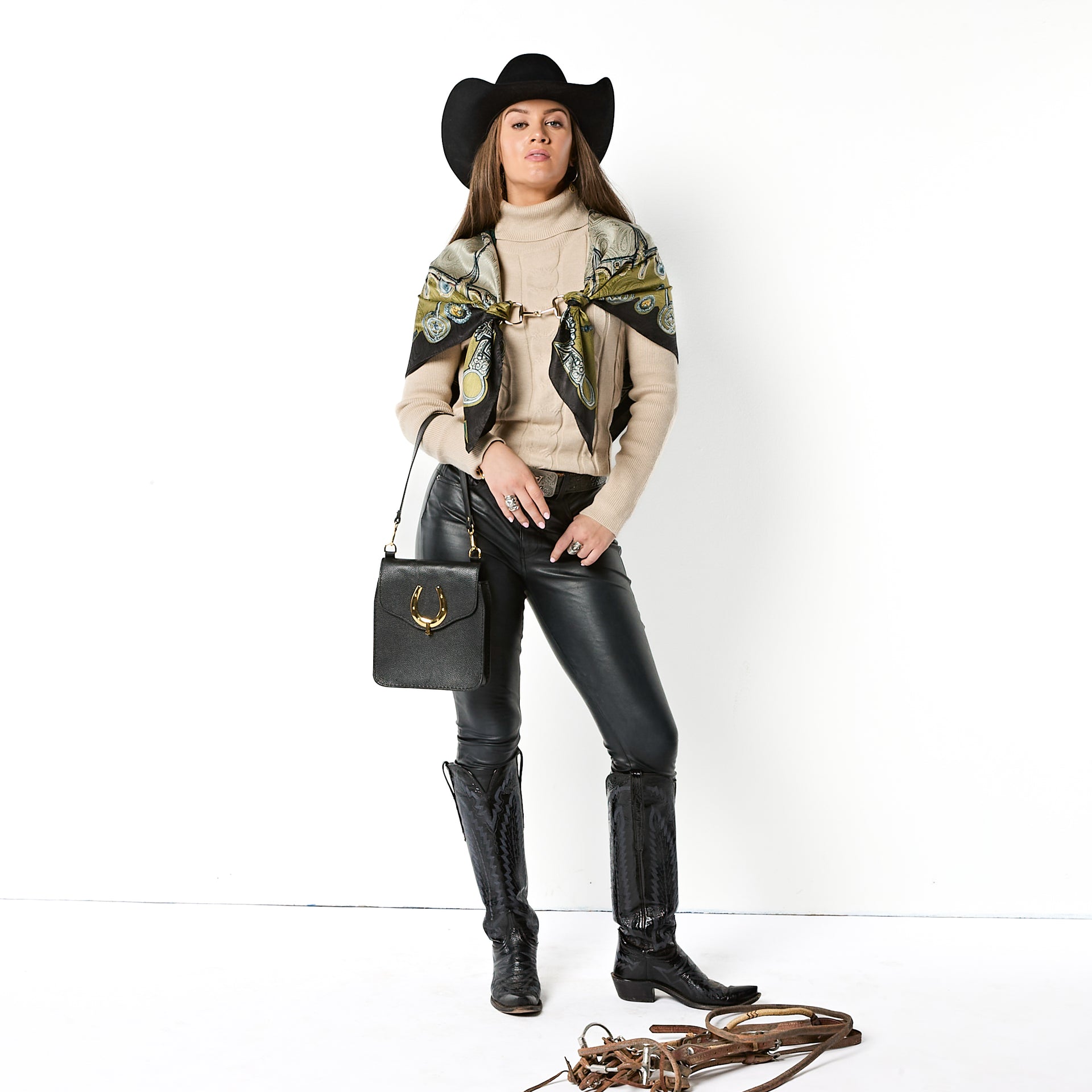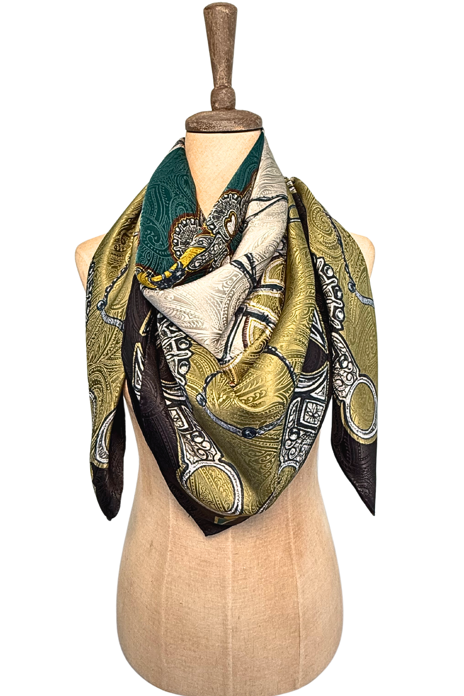The Bits scarf is an artful study in symmetry and craftsmanship, featuring a striking radial design inspired by the refined forms of classic horse bits. Each snaffle and shank interlocks in a graceful rhythm that evokes both precision and motion. A nod to the artistry of fine tack-making, Bits celebrates the balance of control and elegance - where craftsmanship meets command. Much like the bit itself, this scarf takes the lead, adding confidence and sophistication to any look. Designed for those who know when to hold the reins and when to let style run free.