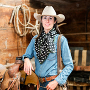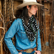 The New Black Baldy Wild Rag is full of hybrid vigor! Yes, we're talking cattle lingo for this new line! Part of the new Fringe Ranchi Rags™ line, built for life on the ranch and time in the saddle. Our Fringe Ranchi Rags™ Collection brings durability, function, and timeless Western style to your closet.