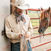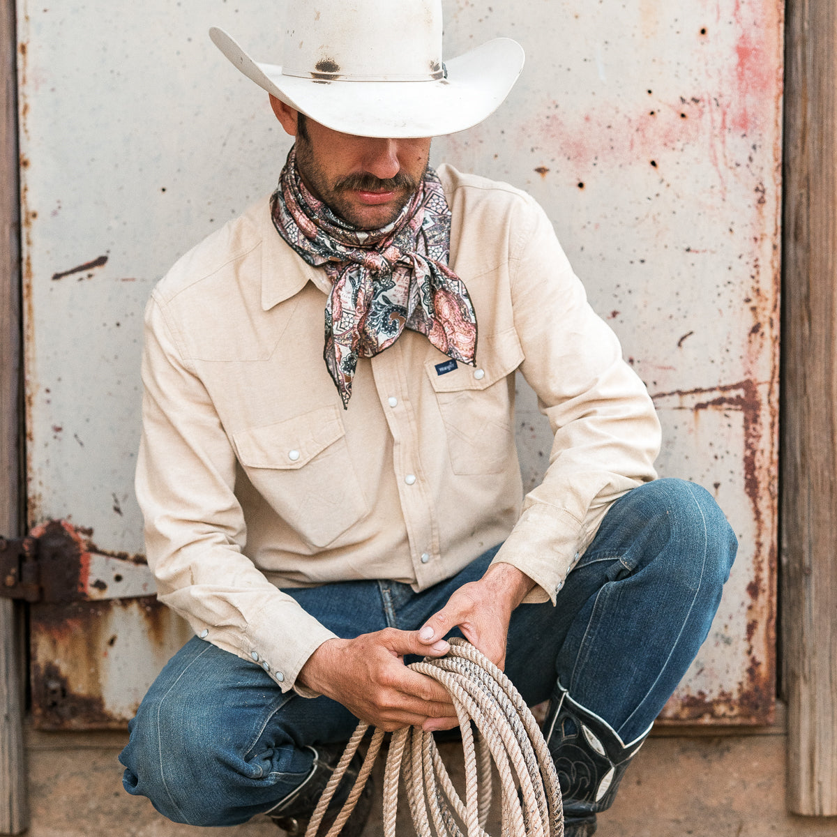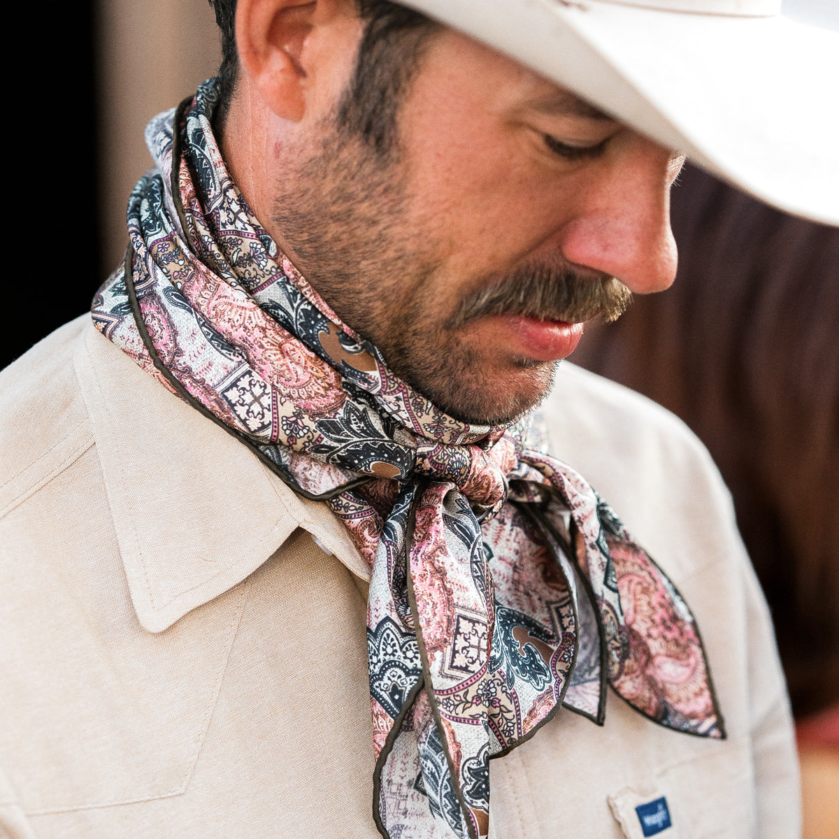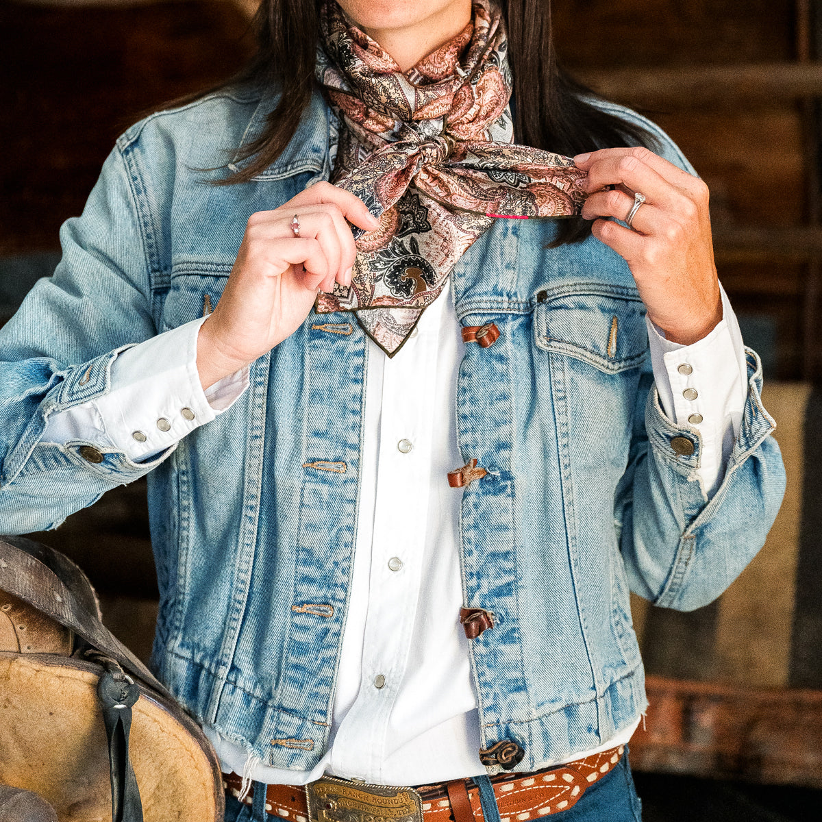 The New Brush Country Wild Rag is pretty, but we wouldn't want to ride through it! LOL! Yes, we're talking ranch lingo for this new line! Part of the new Fringe Ranchi Rags™ line, built for life on the ranch and time in the saddle. Our Fringe Ranchi Rags™ Collection brings durability, function, and timeless Western style to your closet.