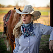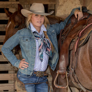 For all of you who can't get enough turquoise jewelry and denim, this large 35x35 silk charmeuse scarf will add a classic, rustic feel to any dress up or dress down outfit. This is a fun scarf dressed up, at the yoga studio or with a t-shirt.