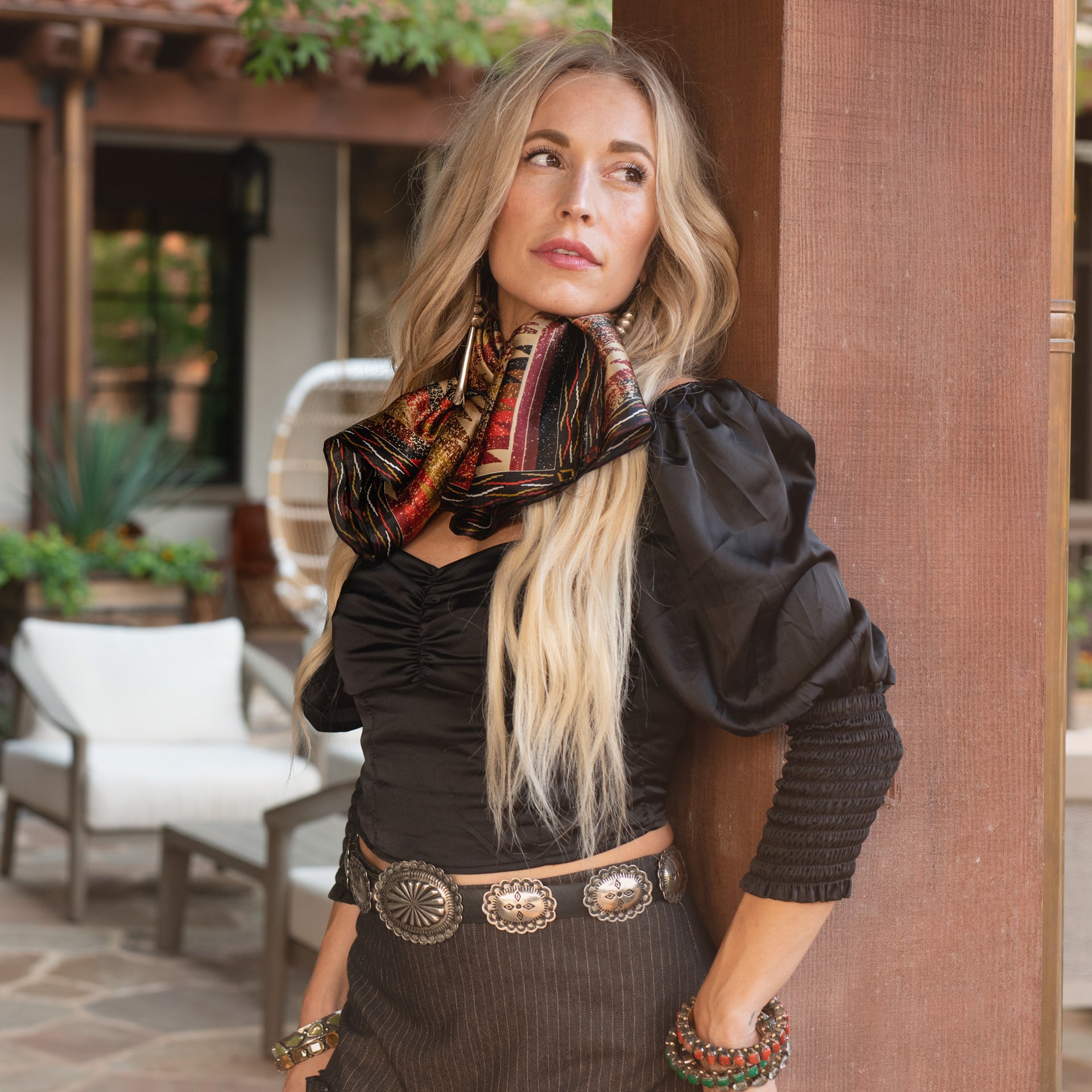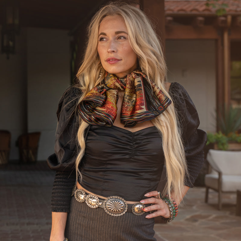 The Just Praying is a print from American Dakota Rugs. We started working together last summer after seeing the great designs this company does. After looking through their designs, all we could see is how amazing they would look on a scarf. This Long Tall 12mm Satin Silk scarf has great fall and winter colors! Shop their great rugs at www.americandakota.com