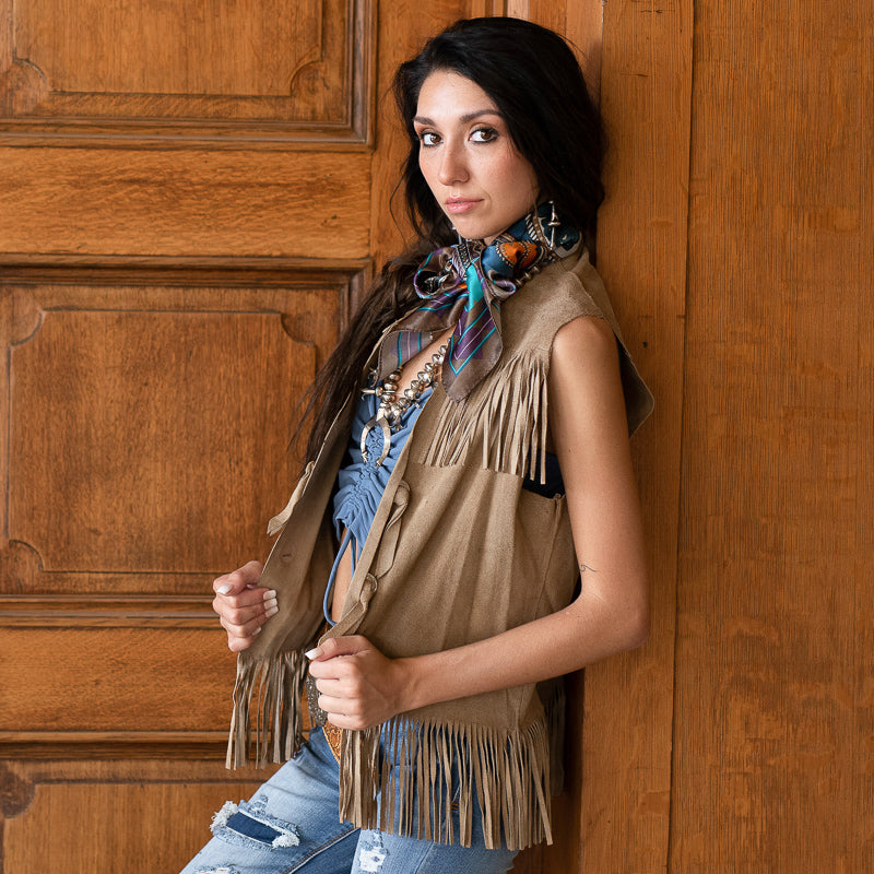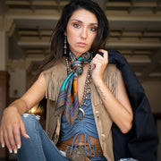 We have been wanting to do a traditional paisley line, but we knew we needed to do it Fringe style! This is a great wild rag for men or women and it has just a little more to it than your typical paizley print. Great way to dress up a white shirt and blazer!