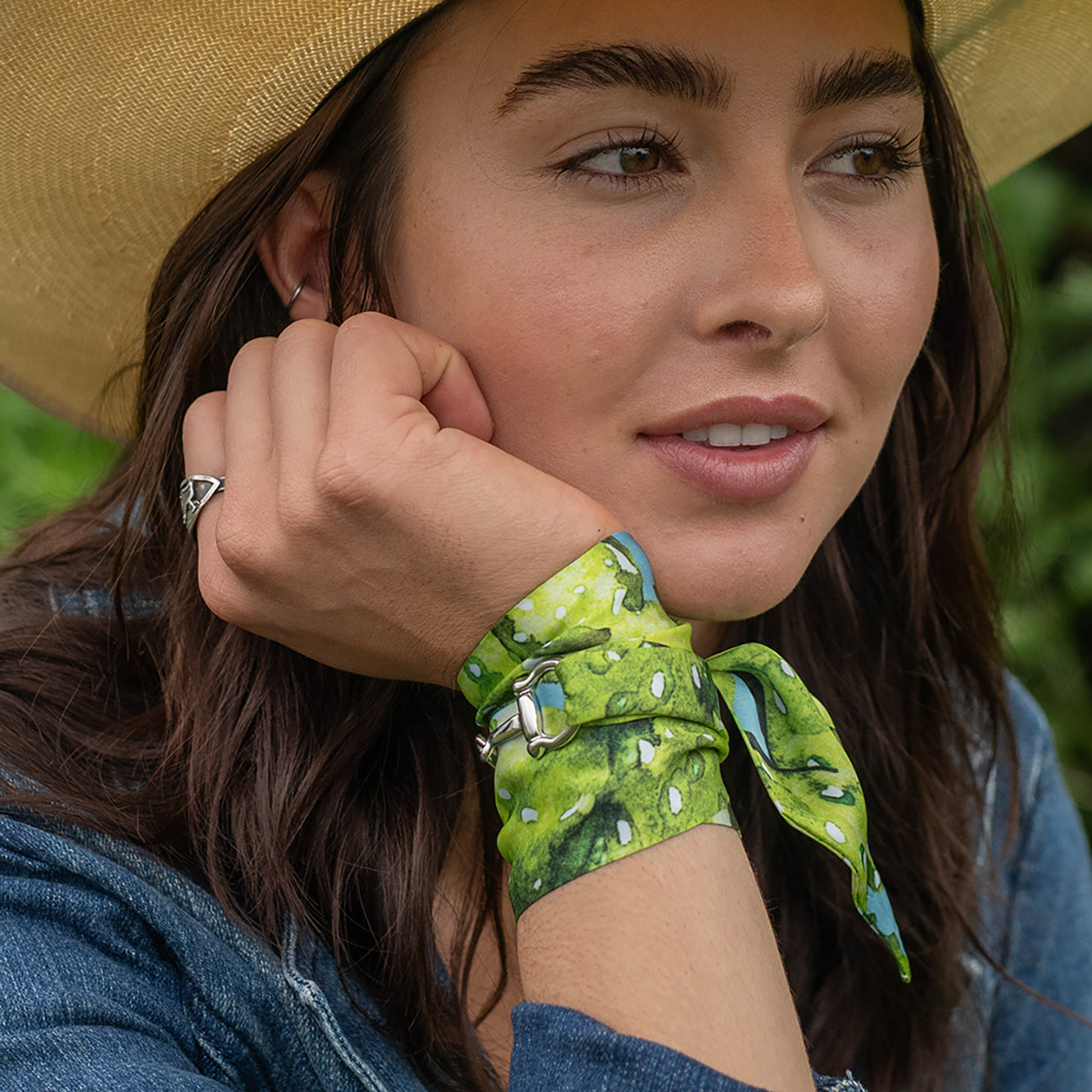 The Prickly Pear Twilly is simple and easy to incorporate into any outfit.... from adding to your neckline to wrapping around your wrist several times along with some silver cuff bracelets. And don't forget adding a Fringe Twilly to your favorite purse handle. One of my all time favorite scarves is a Twilly I purchased years ago. A great way to add color for a more minimalist look!